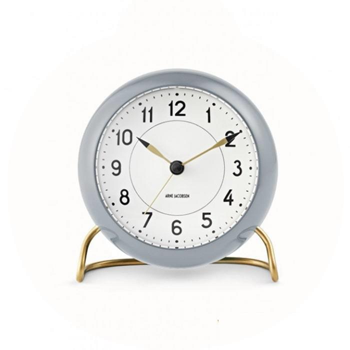 Urkasse: Grå plastik Fod: guldfarvet metal Funktioner: Alarm og LED lys Urskivefarve: Hvid Mål: Ø 11 cm Vægt: 0,4 kg OBS! Uret bruger 2 stk. AA batterier. Batterier er ikke inkluderet.