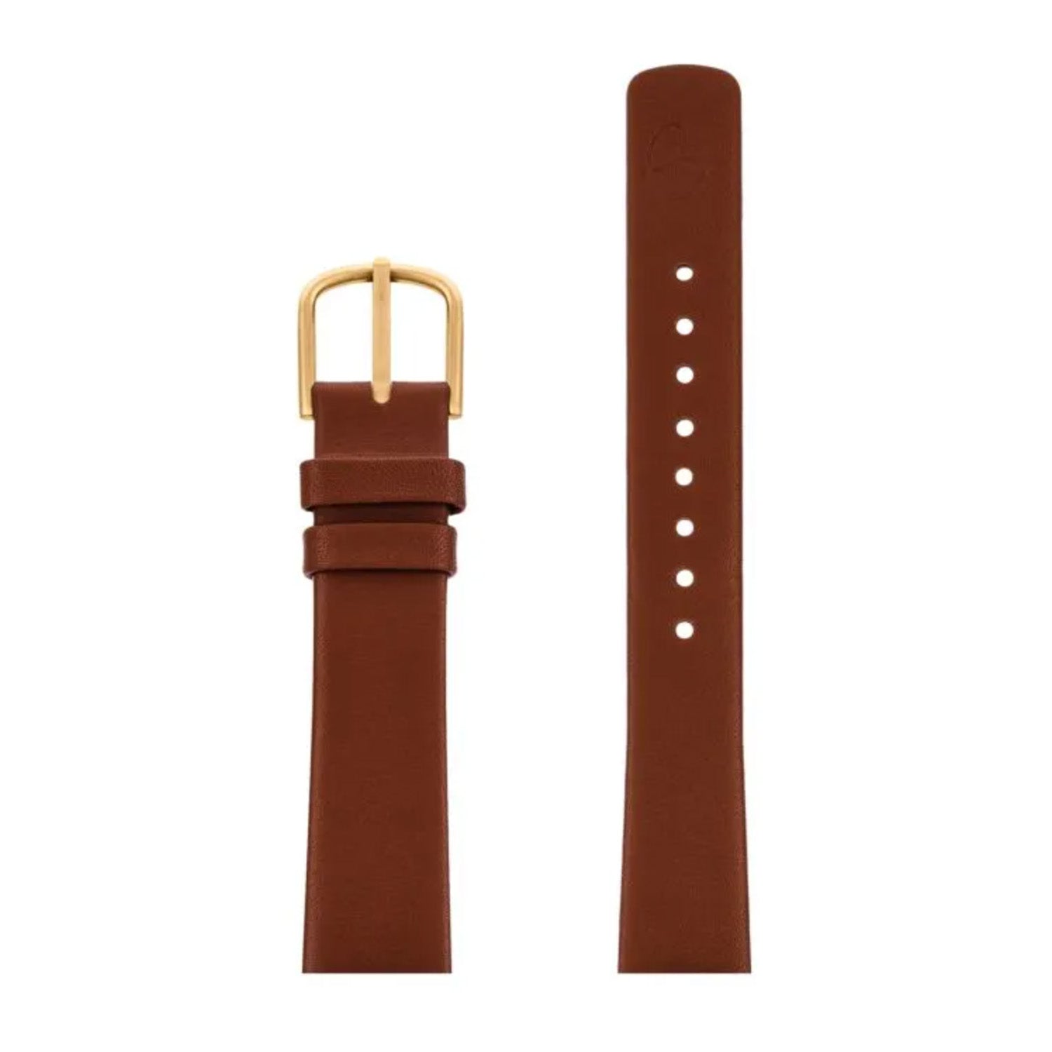 Remmen er udført i en dyb brun læderfarve, der udstråler varme og luksus. Den gyldne spænde tilføjer et strejf af elegance og kontrast, der fremhæver remmens raffinerede udtryk. Den glatte lædertekstur føles behagelig mod huden og sikrer en komfortabel oplevelse hele dagen.