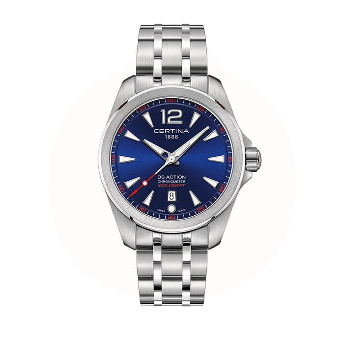 Fordele ved Certina DS Action COSC:- Præcist urværk: Certificeret COSC-kronometer sikrer nøjagtighed.