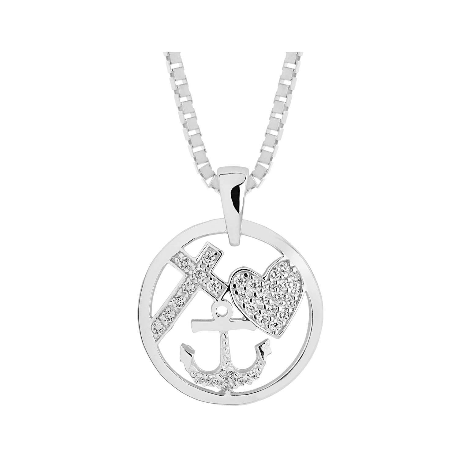 Aveny COLLECTION - Cirkelvedhæng m. tro/håb og kærlighed, zirkonia/14 mm - Sølv