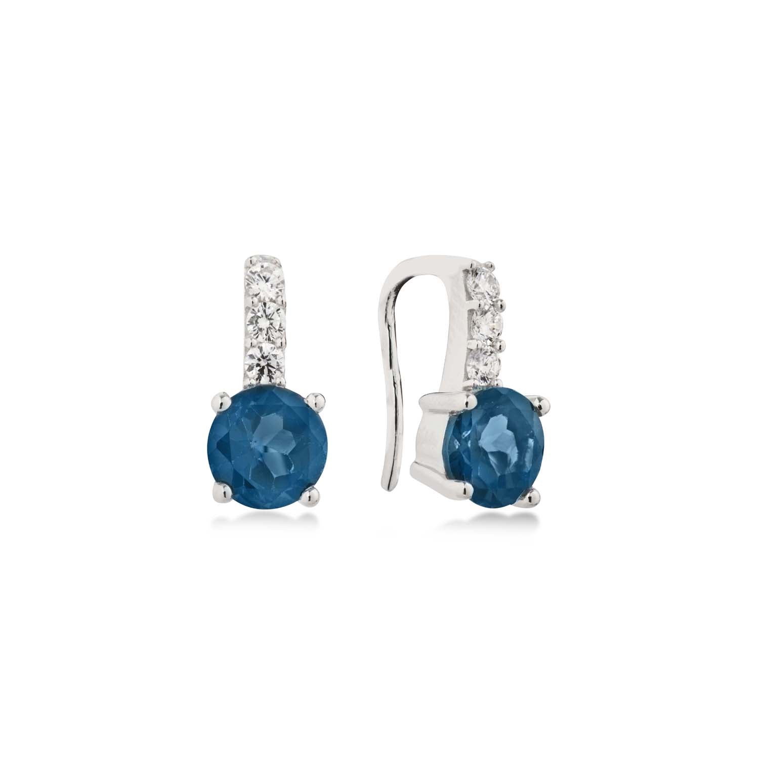 Aveny COLLECTION - Ørebøjler m. southsea blå topas, zirkonia - Rhodineret sølv