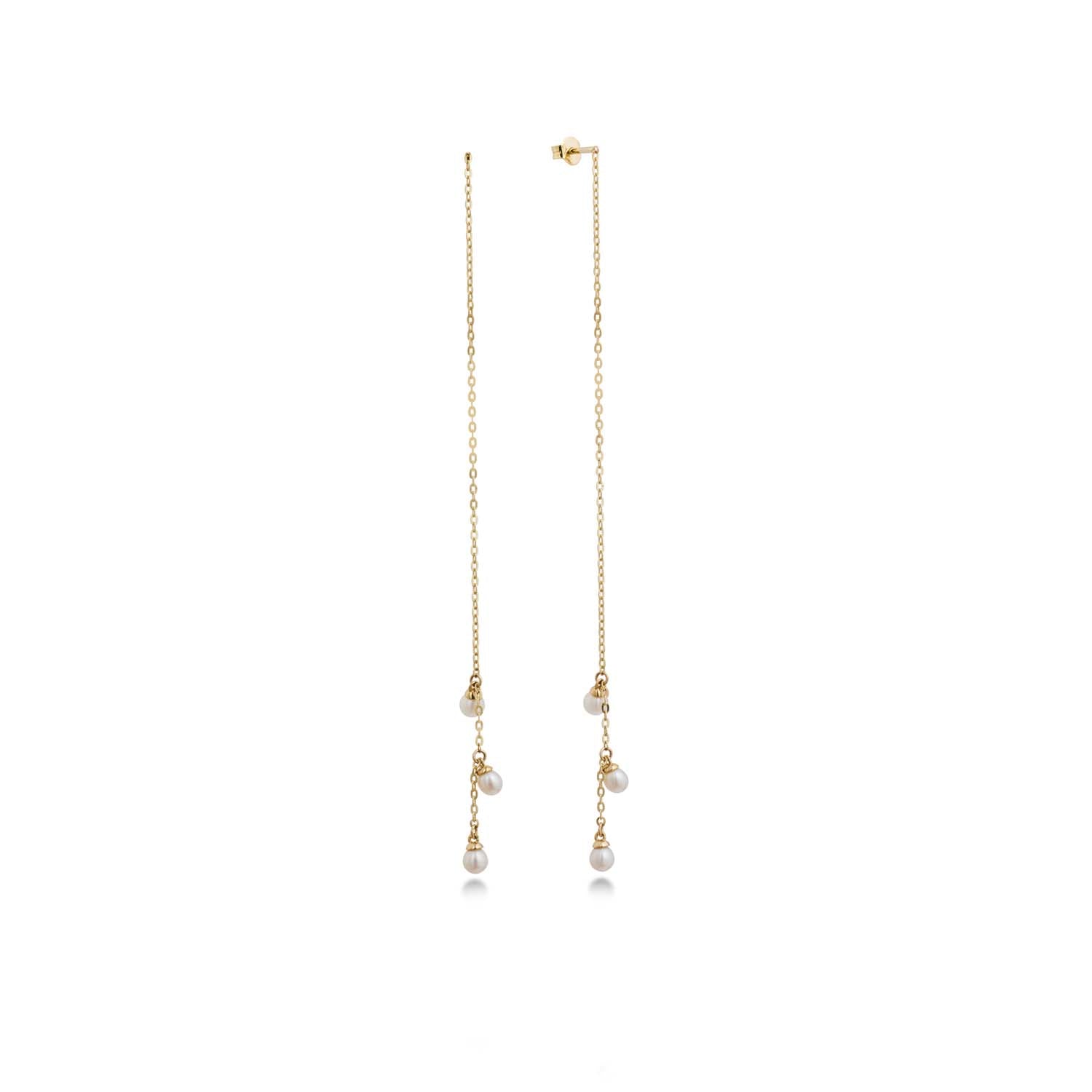 Aveny COLLECTION - Ørehænger, kæde/ferskvandsperler - 14 kt. guld