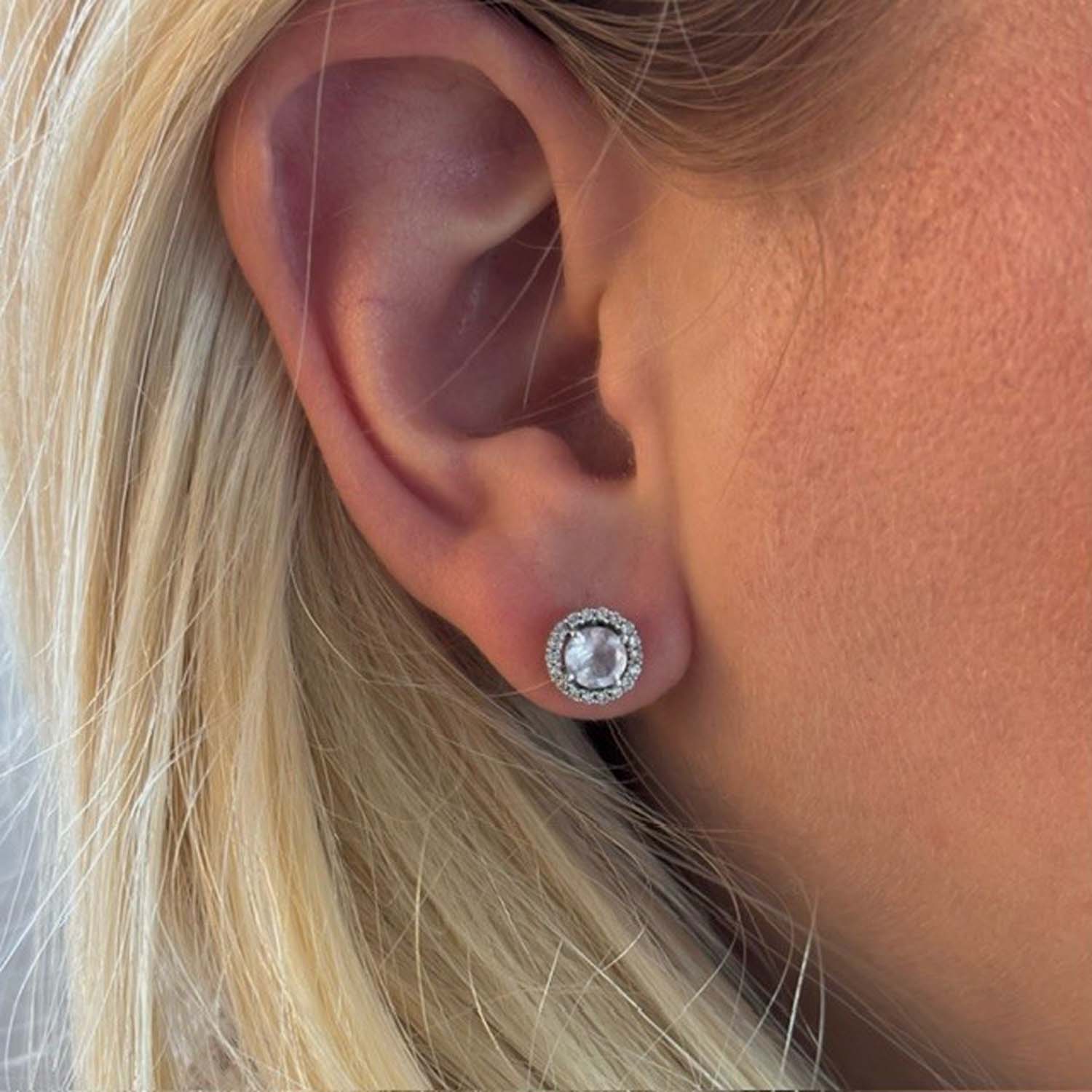 Aveny COLLECTION - Ørestikker m. roset, 0,19 w/si og quartz 0,86 ct. - 14 kt. hvidguld