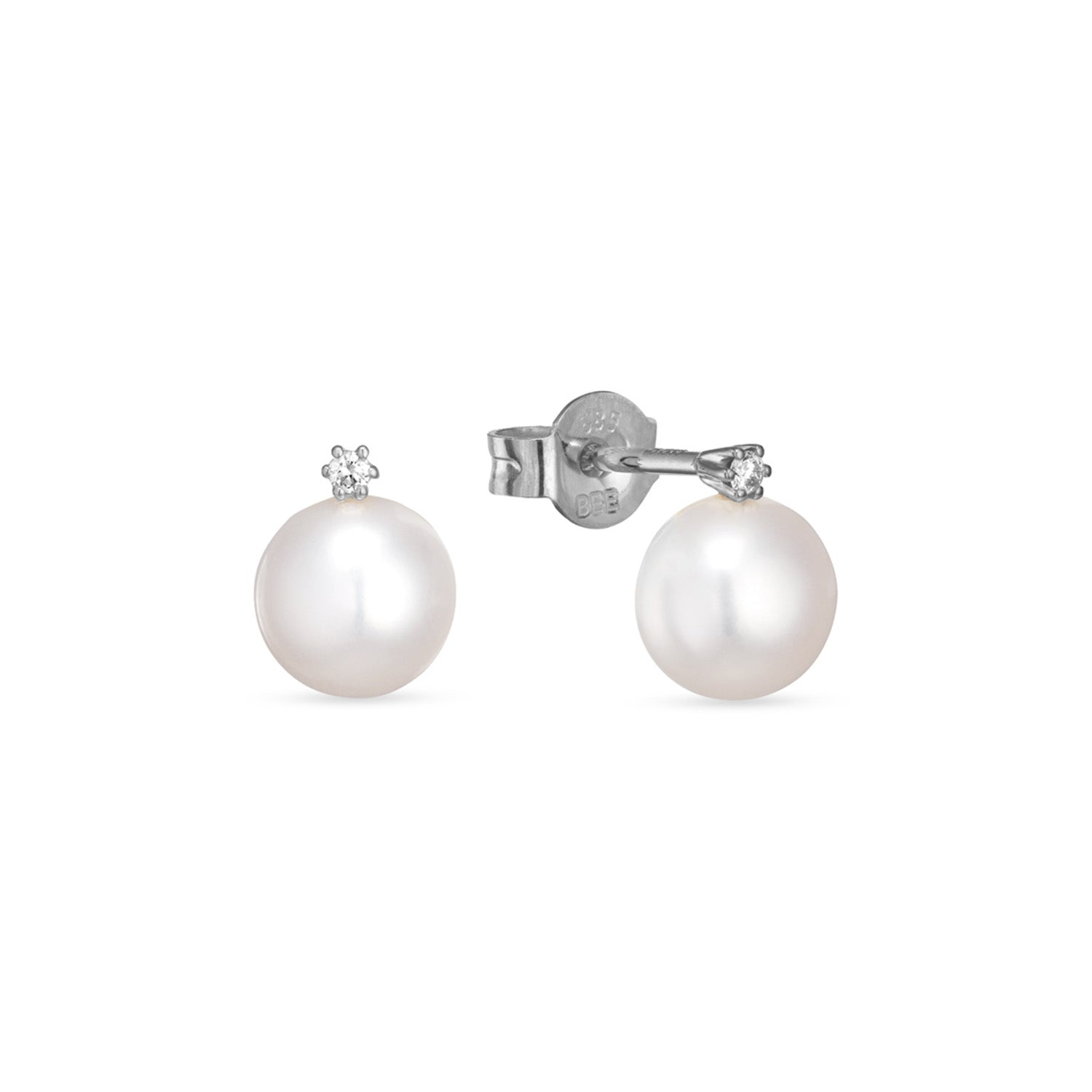 Aveny LUXURY - Øreringe m. ferskvandsperle, 2x0,015 ct. w/si - 14 kt. hvidguld