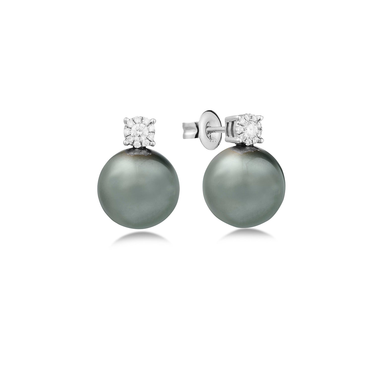 Aveny LUXURY - Ørestikker m. tahitiperle, 10 mm/0,14 ct. w/si - 14 kt. hvidguld