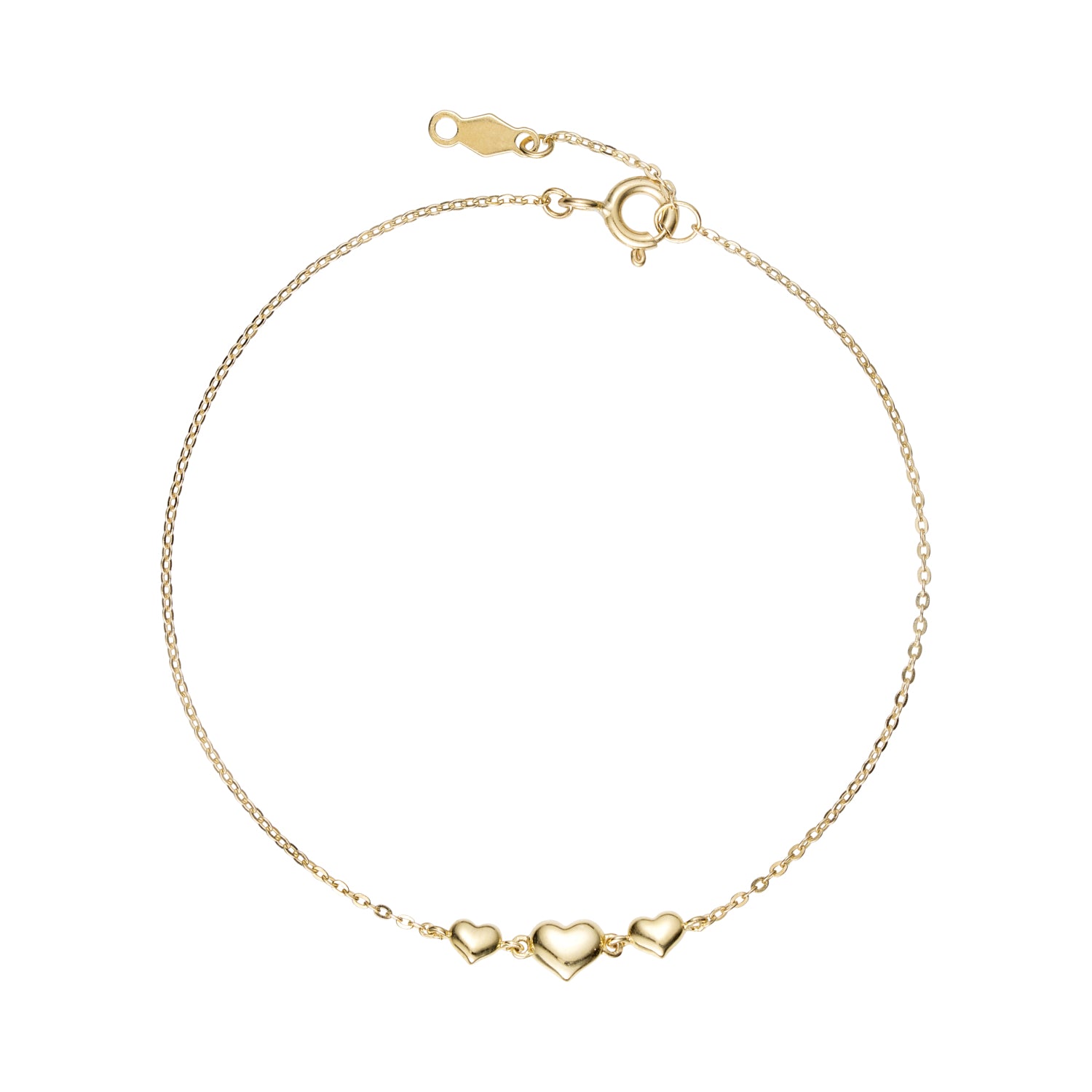 Aveny NINE K - Armbånd m. 3 små hjerter, 16+2 cm - 9 kt. guld