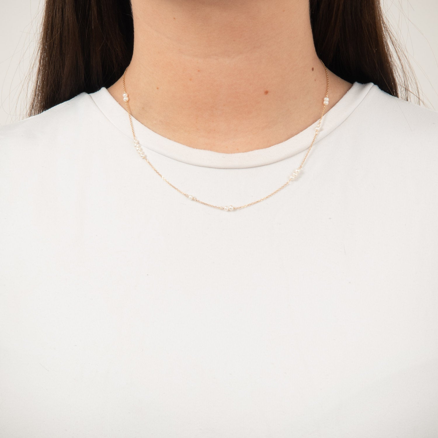 Aveny NINE K - Halskæde m. ferskvandsperle, 42+3 cm - 9 kt. guld