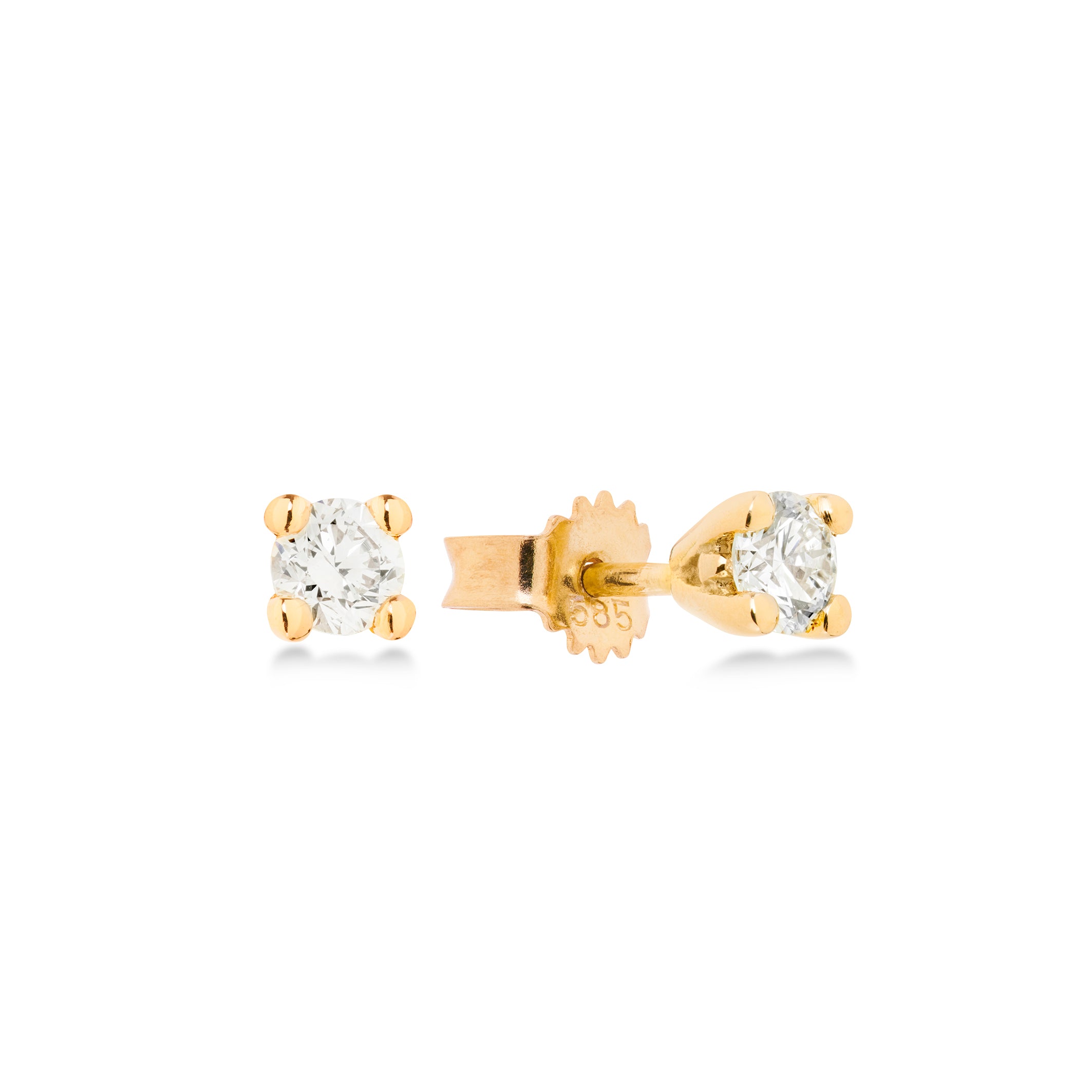 Ørestikkernes design er enkelt og raffineret, hvilket gør dem til et alsidigt valg for enhver stil. Den glatte overflade af det gyldne metal fremhæver diamantens klare skønhed og skaber en harmonisk balance mellem materialer. De små, men strålende diamanter fanger lyset fra alle vinkler og tilføjer en gnist til dit look.