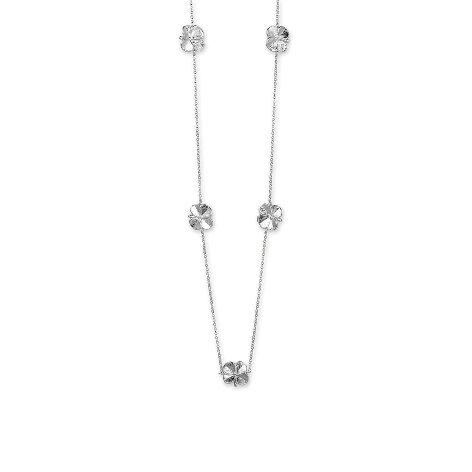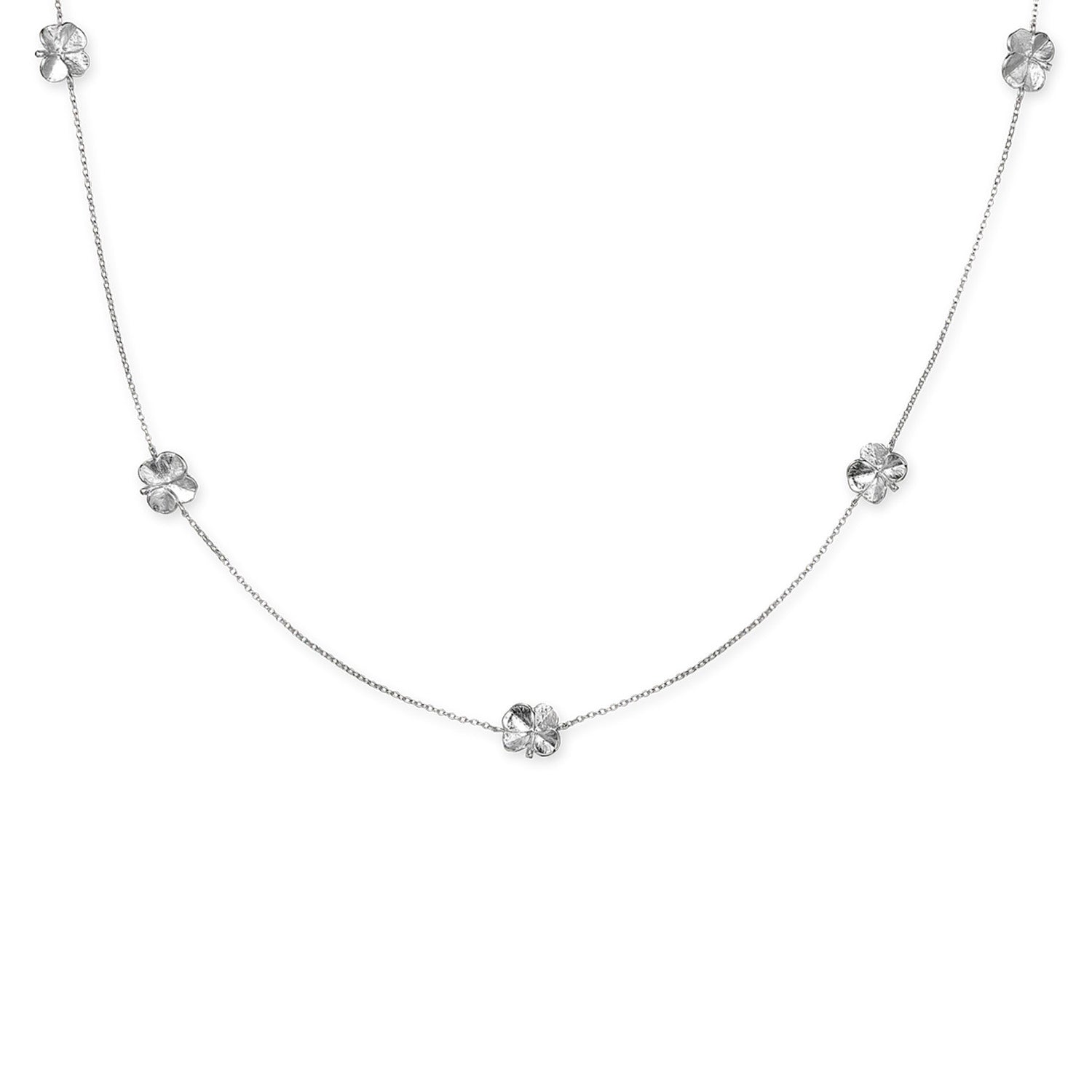 Flora Danica - Firkløver halskæde m. 5 stk, 50-60 cm - Sølv