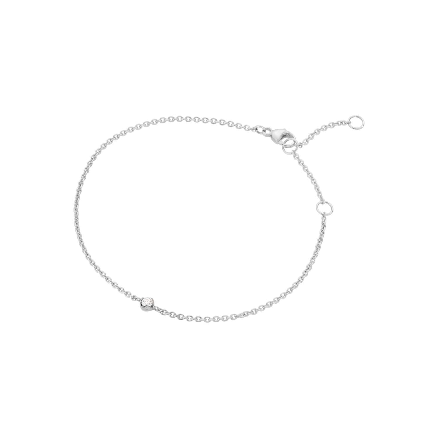 Armbåndet er udført i en fin kæde, der smyger sig om håndleddet med lethed. Den diskrete diamant tilføjer en sofistikeret detalje, der fanger lyset på smukkeste vis. Hvidguldet giver en kølig, elegant glans, der fremhæver armbåndets raffinerede design.