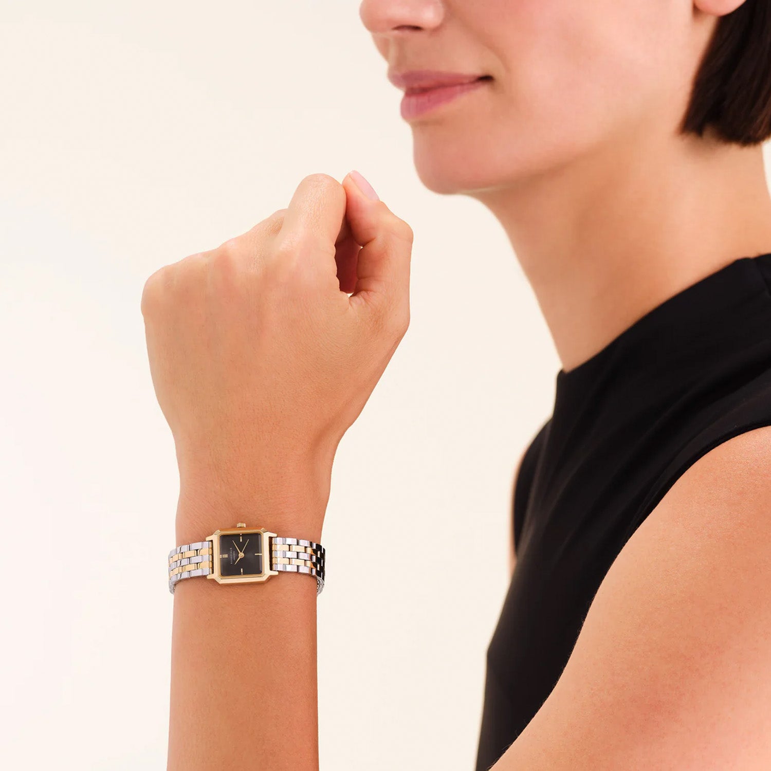 Rosefield - Boxelle Silver & Gold med lænke, 19,5 mm - Sort, rustfrit stål