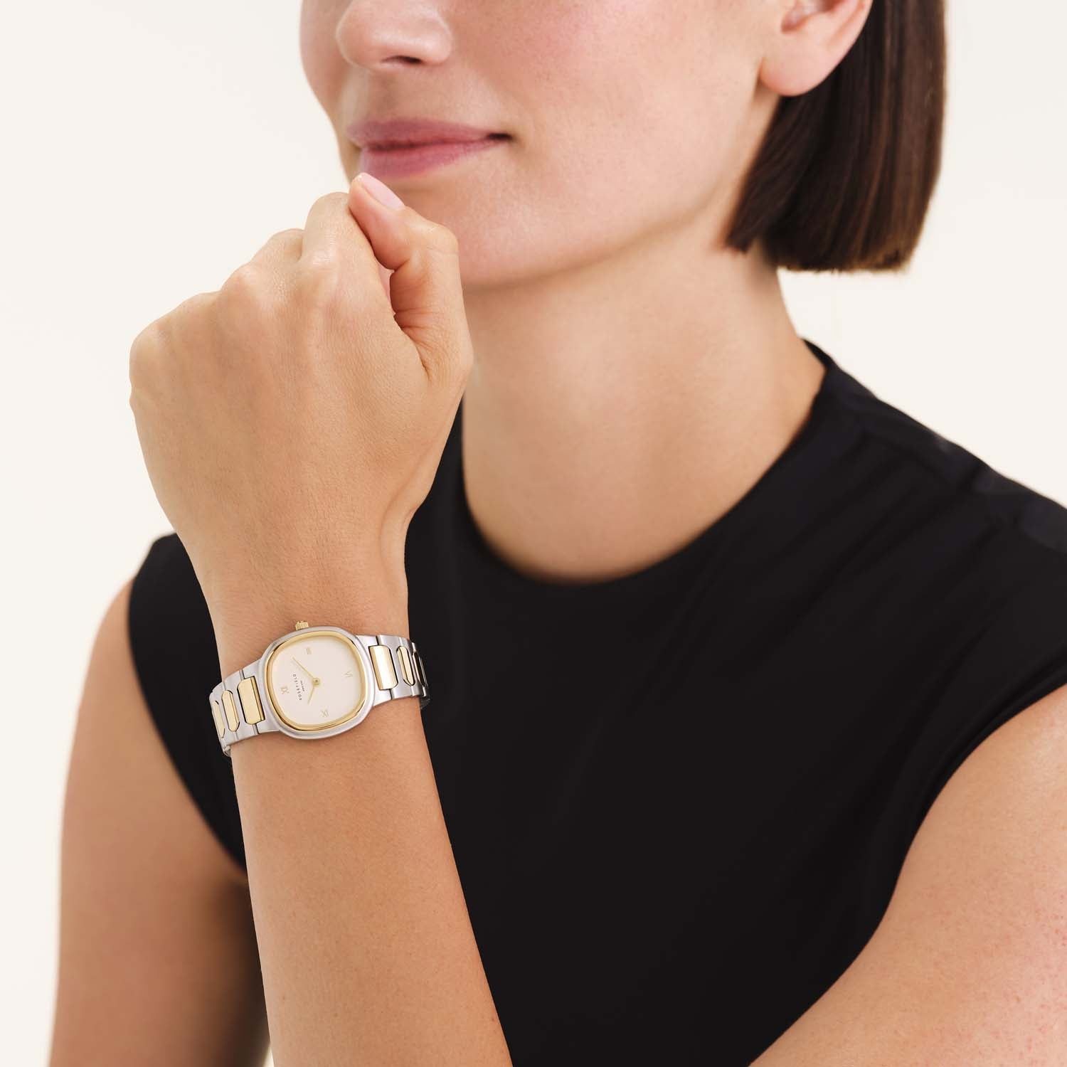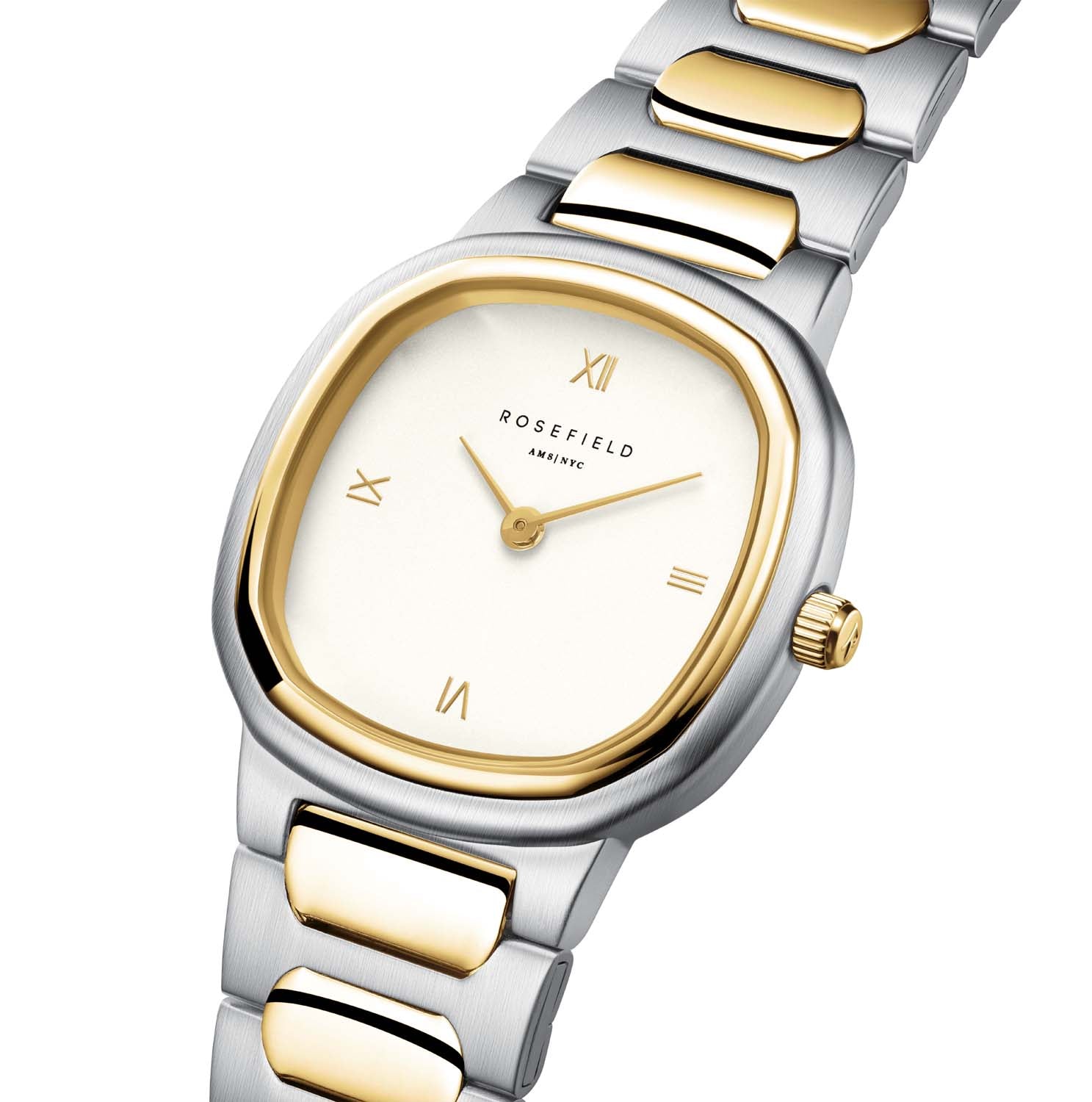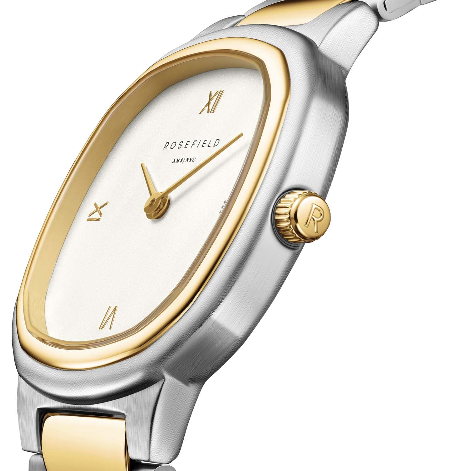 Rosefield - Gaia Silver & Gold med lænke, 30 mm - Hvid, rustfrit stål