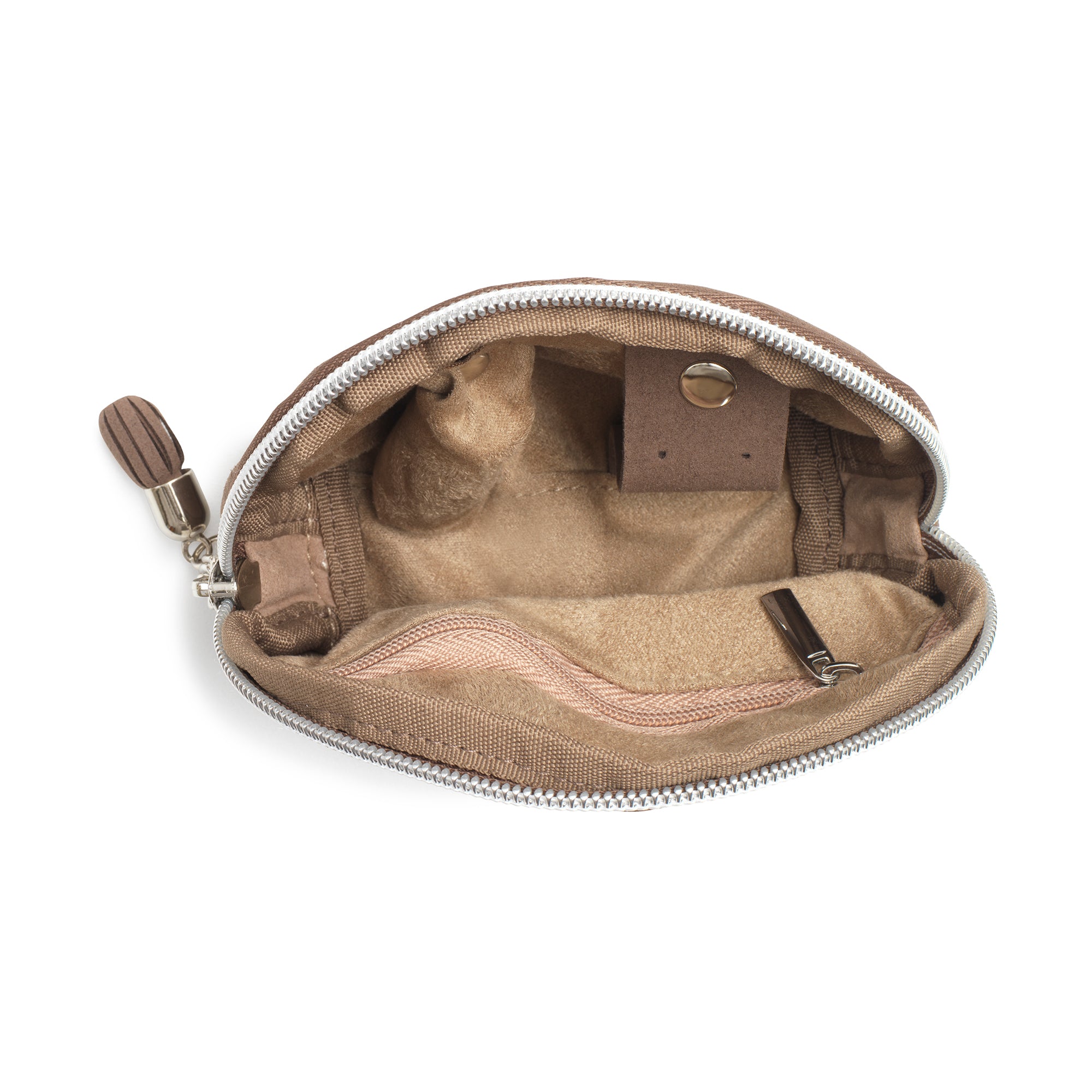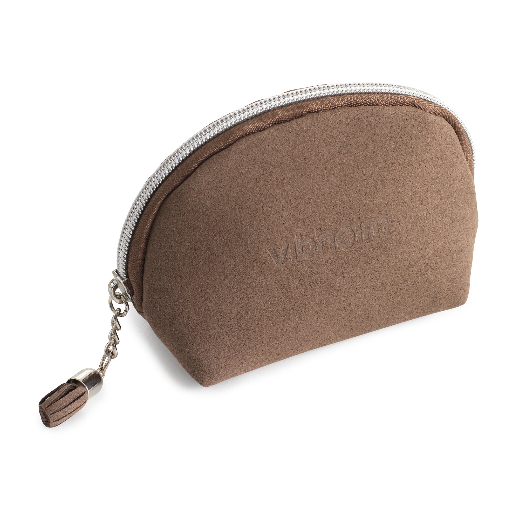 Den smukke taupe nuance giver smykkepungen et moderne og stilrent look, der passer til enhver stil. Den glatte tekstur føles luksuriøs og behagelig at røre ved, mens lynlåsen sikrer, at dine smykker forbliver sikkert opbevaret. Det diskrete logo tilføjer et strejf af eksklusivitet uden at være overvældende.