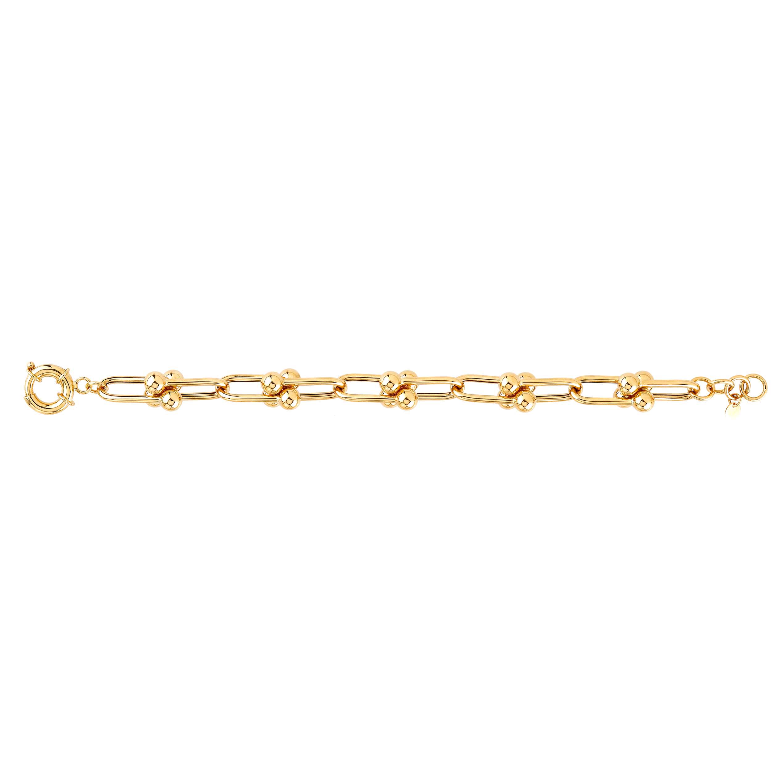 Armbåndet er udført i en smuk guldfarve, der tilføjer et strejf af luksus til dit look. De fine detaljer i designet fremhæver armbåndets unikke karakter og gør det til et iøjnefaldende tilbehør. Den glatte overflade og de polerede led giver en behagelig følelse mod huden, hvilket gør det ideelt til daglig brug.