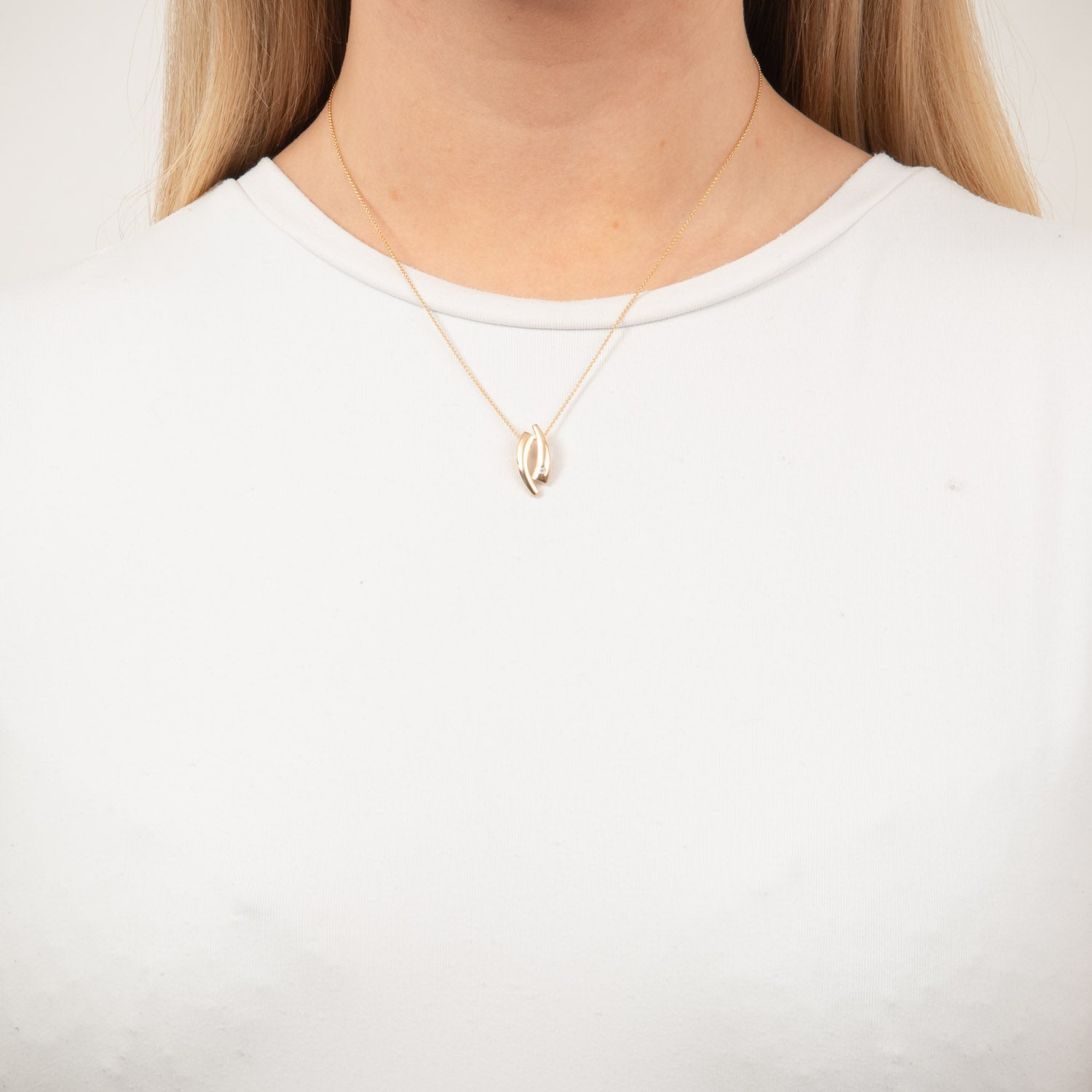 Vedhænget har en længde på 45+3 cm, hvilket gør det alsidigt og perfekt til både hverdag og fest. Den gyldne farve fremhæver din naturlige skønhed og tilføjer et sofistikeret touch til dit look.