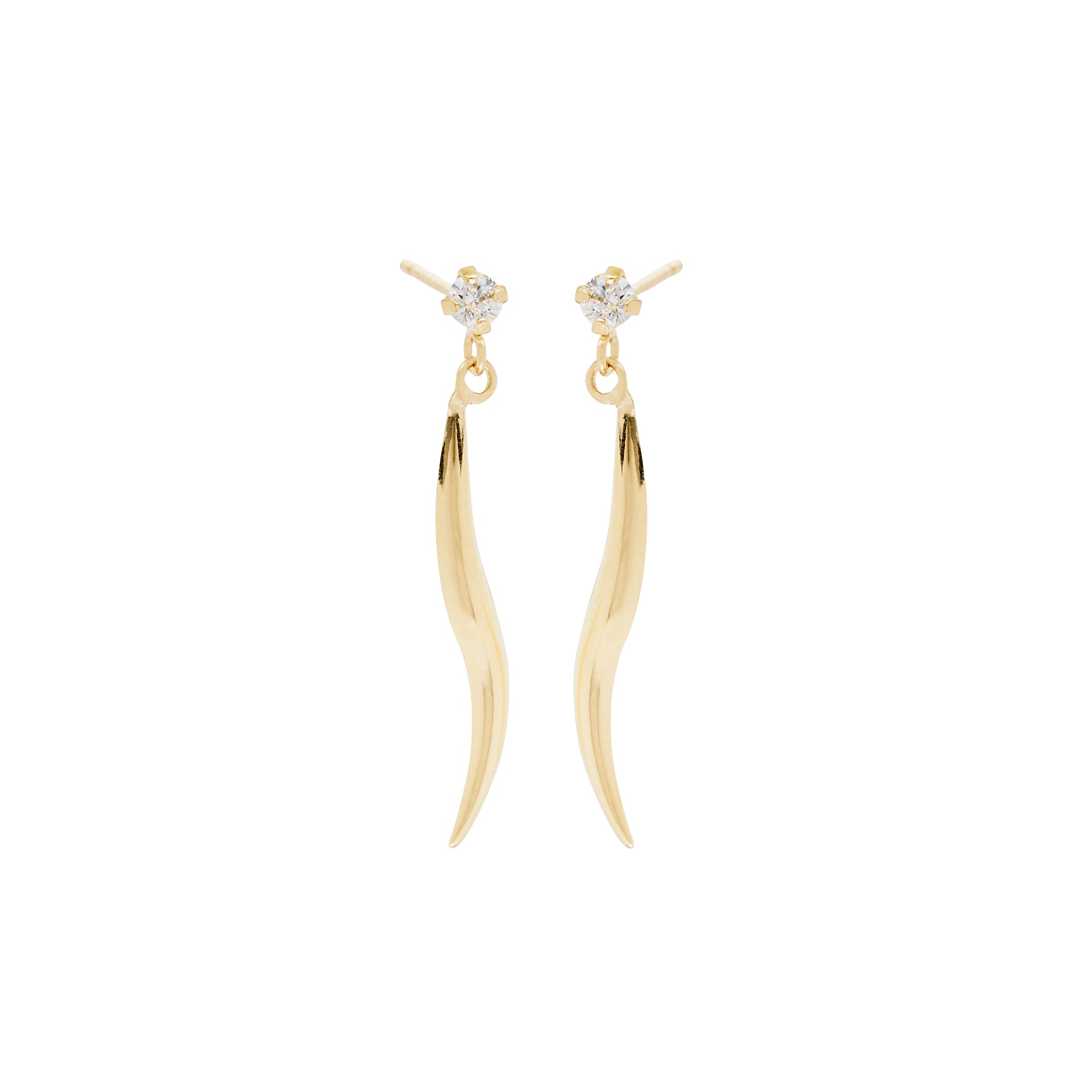 Disse øreringe er udført i en smuk guldfarve, der fremhæver deres elegante kurver. Den glatte overflade reflekterer lyset og tilføjer en ekstra dimension til deres visuelle appel. Øreringene hænger let fra øret, hvilket giver en følelse af bevægelse og liv.