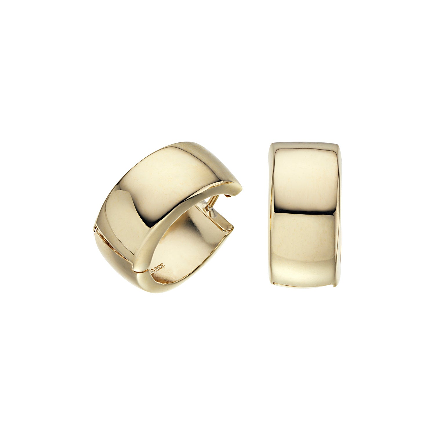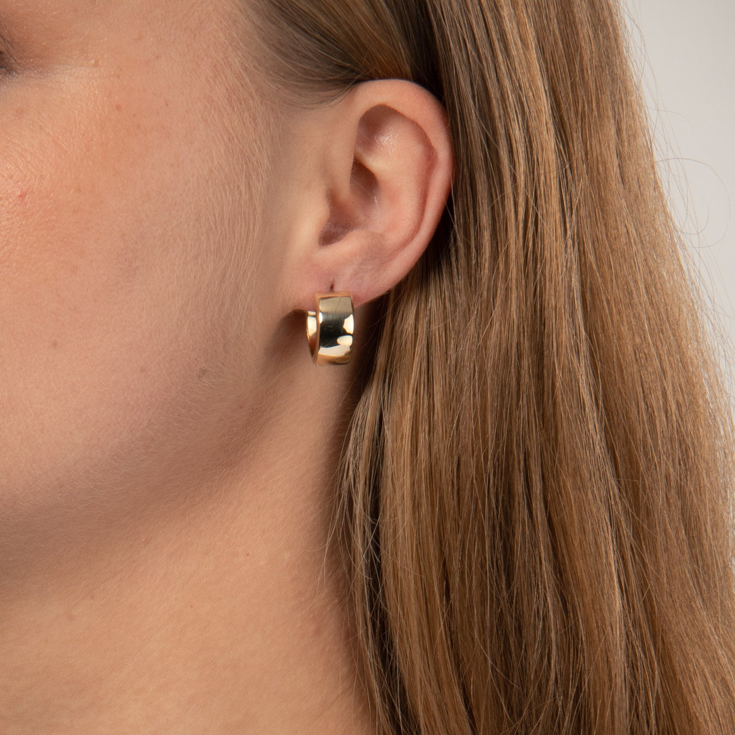 Disse creoler er udført i en smuk, glansfuld guldtonet finish, der fanger lyset på en subtil og sofistikeret måde. Den glatte overflade og den perfekte runding giver et moderne look, der aldrig går af mode. Øreringene har en praktisk klik-lukning, der sikrer, at de sidder sikkert og komfortabelt på øret.