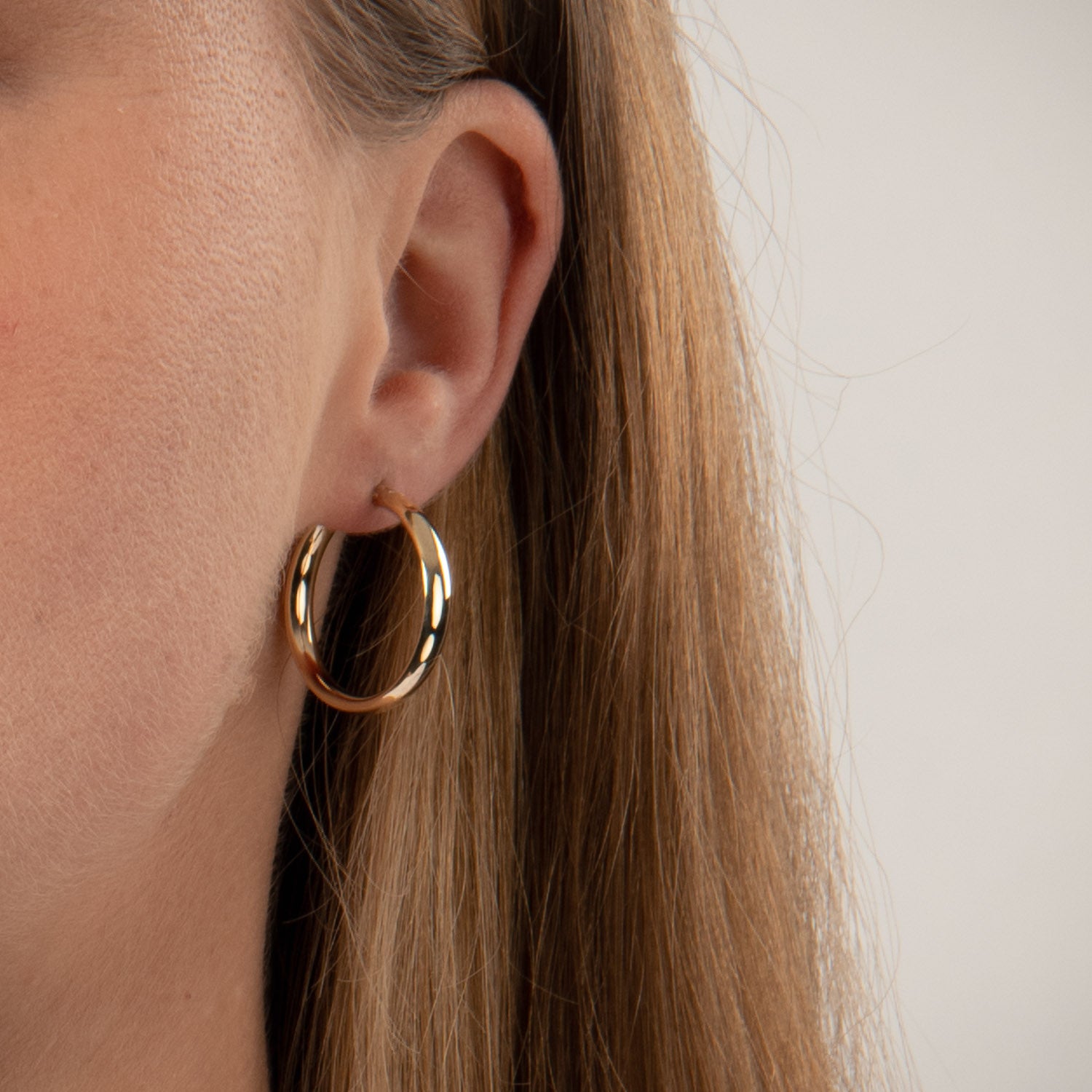 Disse creoler har en glat, poleret overflade, der reflekterer lyset smukt og fremhæver guldfarvens varme glød. Den enkle cirkulære form giver et klassisk udtryk, mens den solide konstruktion sikrer, at de holder sig smukke i mange år. Øreringene måler 4x24 mm, hvilket gør dem til en ideel størrelse for både diskret elegance og synlig tilstedeværelse.