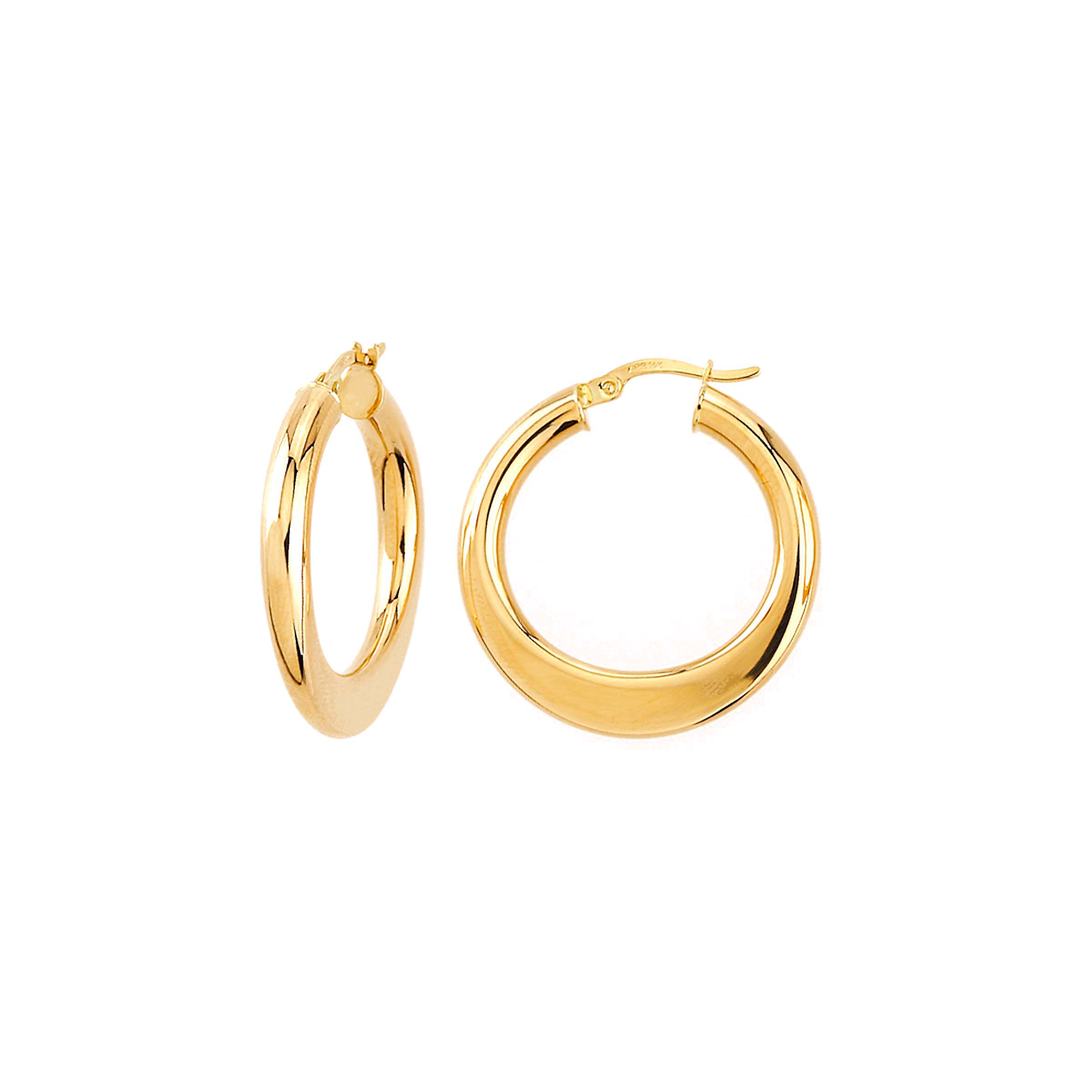 Disse creoler er udført i en smuk guldfarve, der fanger lyset på en sofistikeret måde. Den glatte overflade og den runde form giver et klassisk udtryk, mens den polerede finish tilføjer en moderne kant. Øreringene er designet til at være lette og behagelige at bære, så du kan have dem på hele dagen uden besvær.