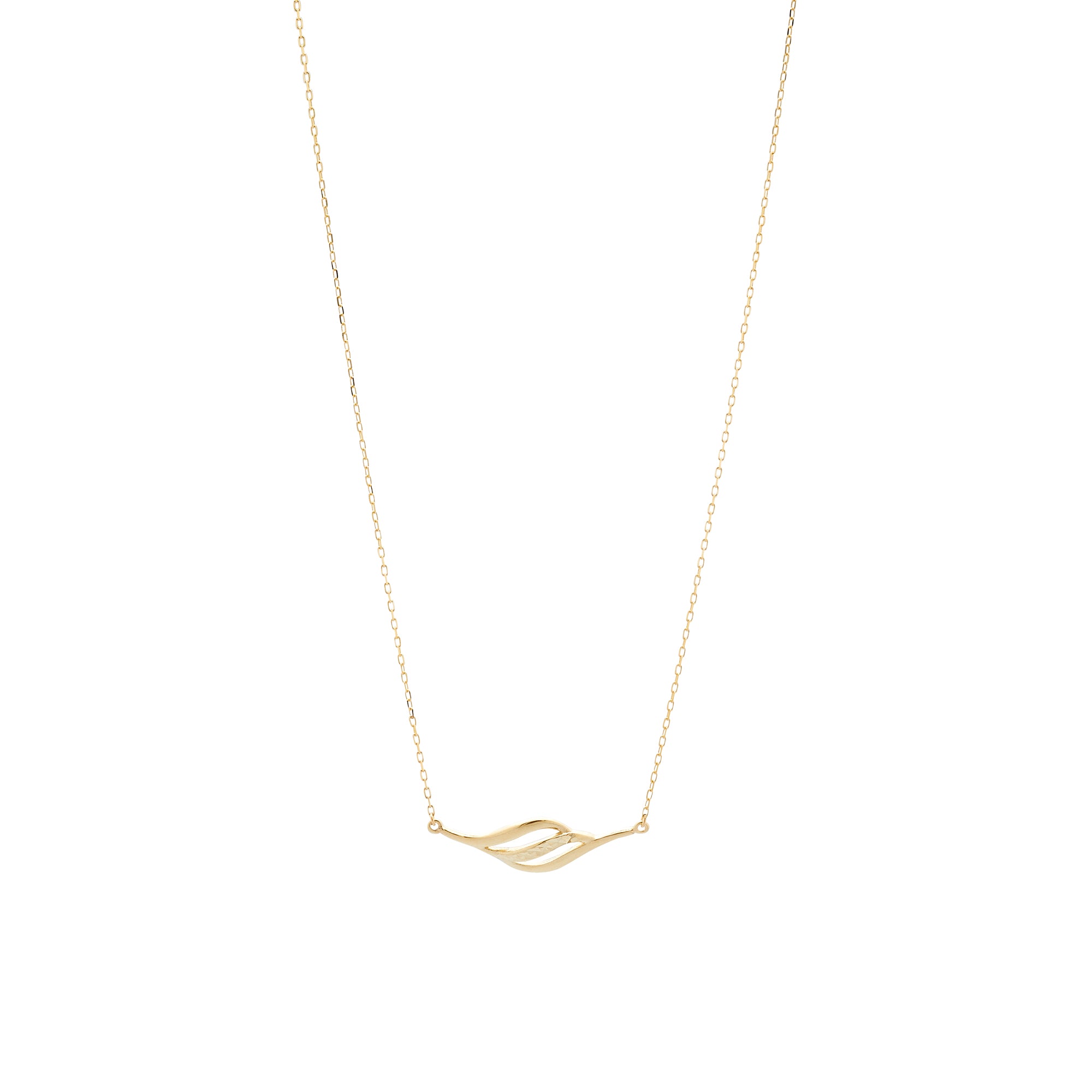 Halskæden har en delikat og fin kæde, der fremhæver det smukke vedhængs unikke form. Den gyldne nuance giver et varmt og indbydende udtryk, der komplementerer enhver hudtone. Designet er enkelt, men alligevel sofistikeret, hvilket gør det til et alsidigt smykke, der kan bæres alene eller sammen med andre smykker for et mere lagdelt look.