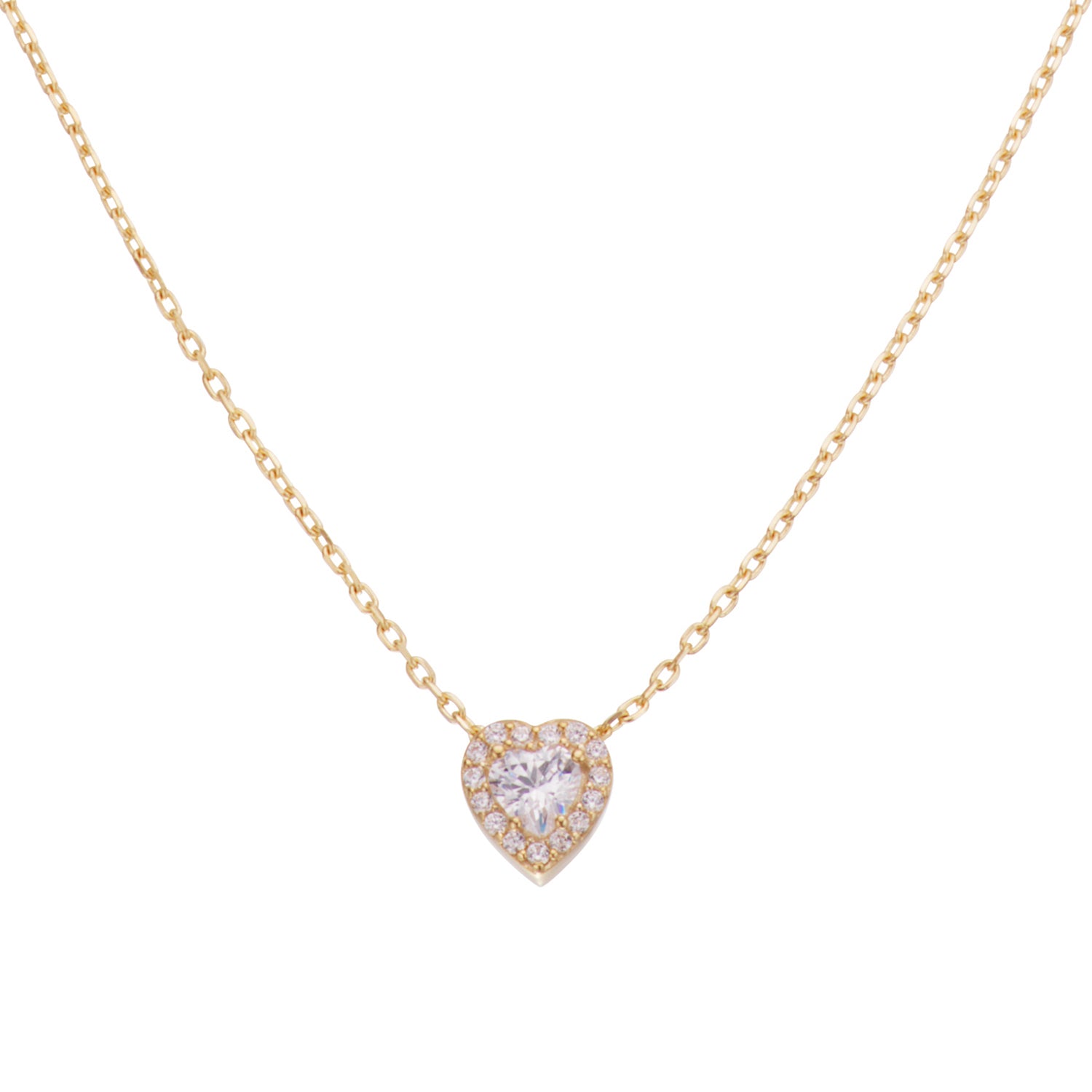 Halskæden har en delikat kæde, der smyger sig elegant om halsen. Det hjerteformede vedhæng er prydet med en strålende glans, der fanger lyset smukt. Den gyldne farve giver et klassisk og sofistikeret udtryk, der passer til enhver stil. Når du bærer denne halskæde, vil du føle en subtil luksus og en følelse af tidløs skønhed.