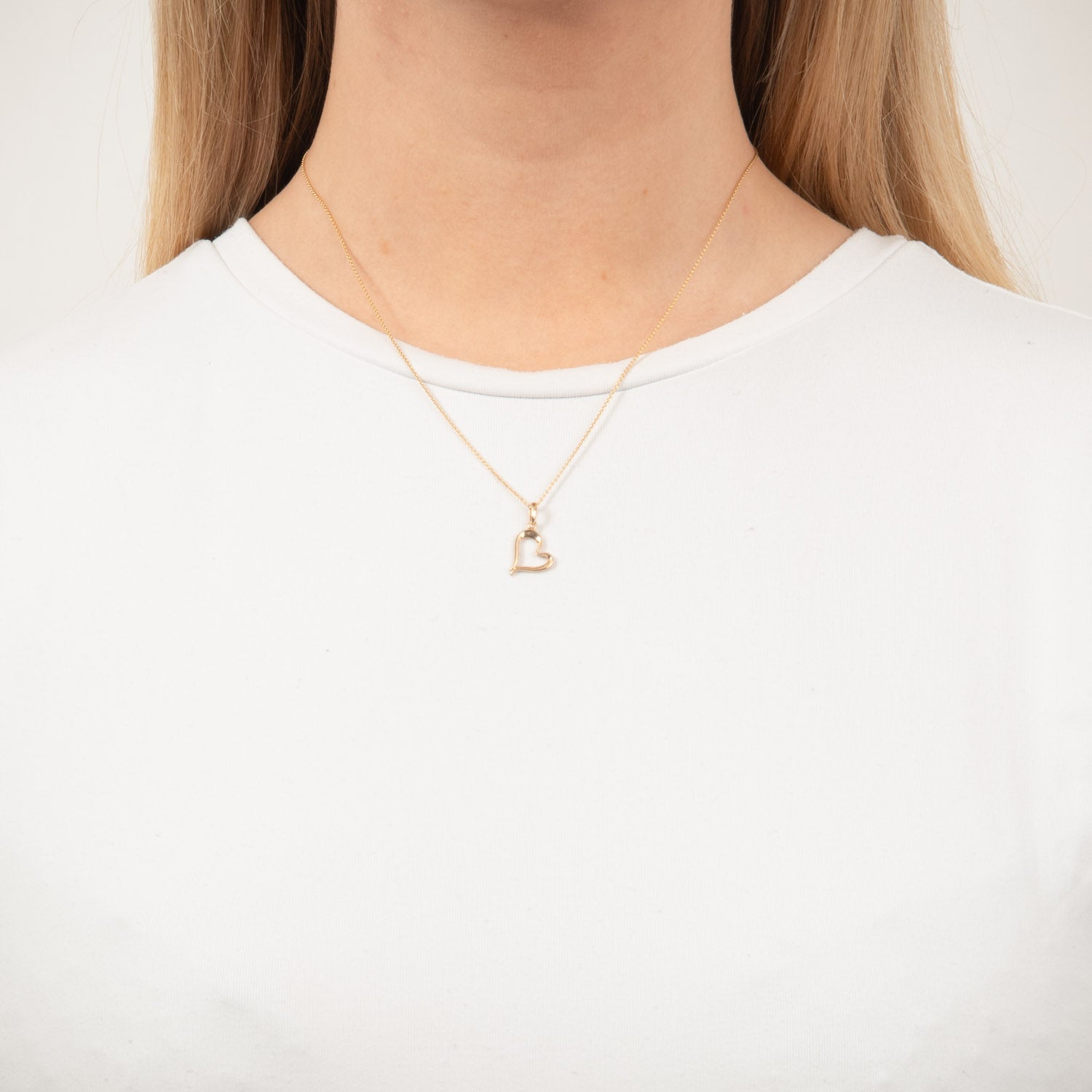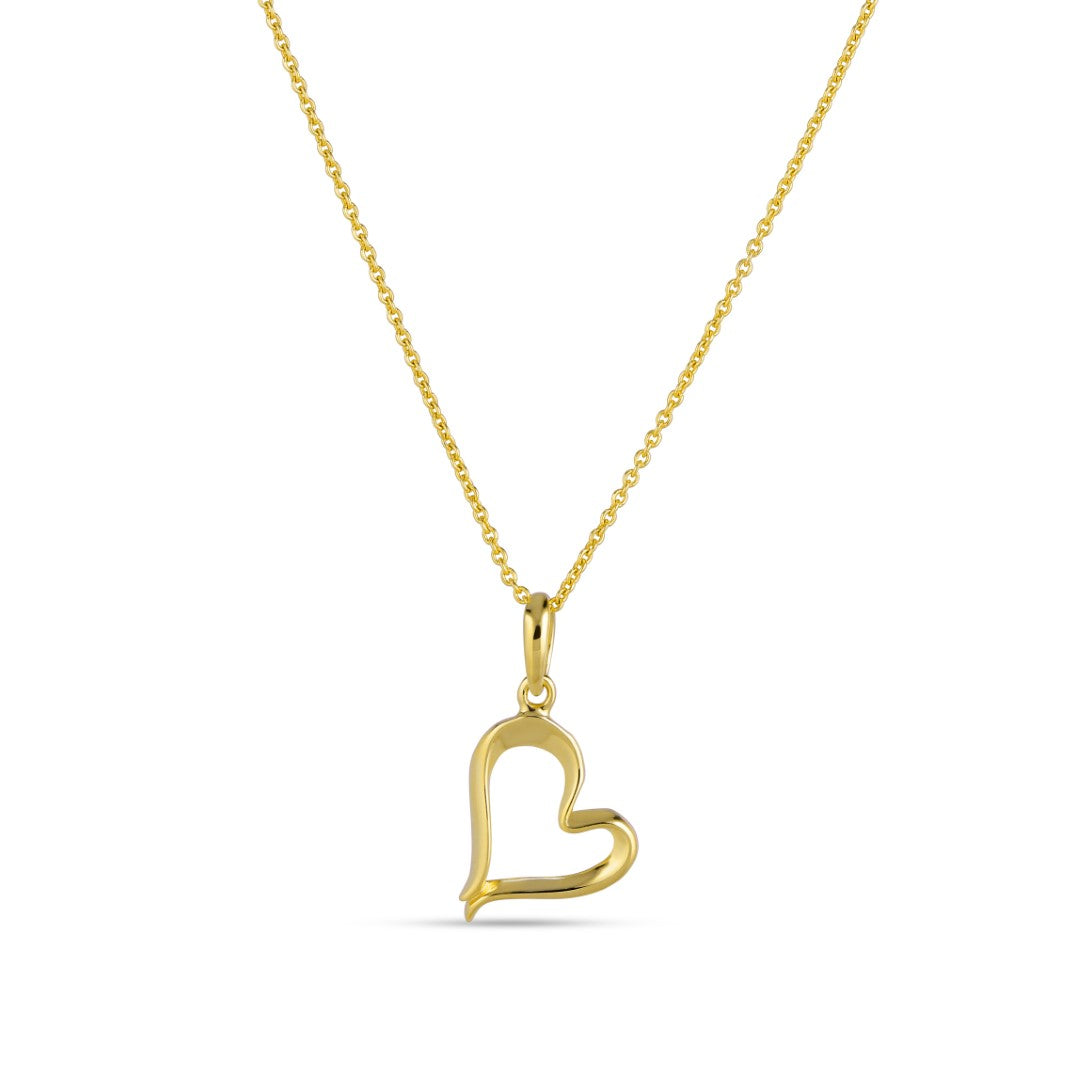 Dette hjertevedhæng udstråler en varm guldfarve, der fanger lyset smukt og tilføjer et strejf af luksus til dit look. Den delikate kæde er både stærk og stilfuld, hvilket gør den behagelig at bære hele dagen. Det åbne hjerte-design symboliserer kærlighed og forbindelse, hvilket gør det til et meningsfuldt smykke.