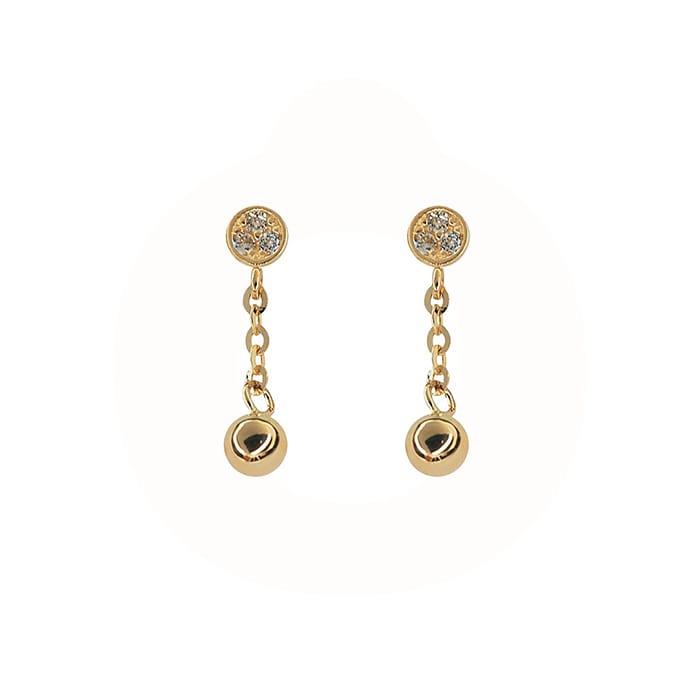 Disse ørehængere er udført i en smuk gylden nuance, der fanger lyset og tilføjer en subtil glans til dit look. De små, funklende sten ved ørestikkerne giver et ekstra pift af glamour. Kæderne hænger elegant og bevæger sig let, hvilket skaber en dynamisk og iøjnefaldende effekt. Den glatte overflade på kuglerne for enden af kæderne tilføjer en moderne og stilren finish.