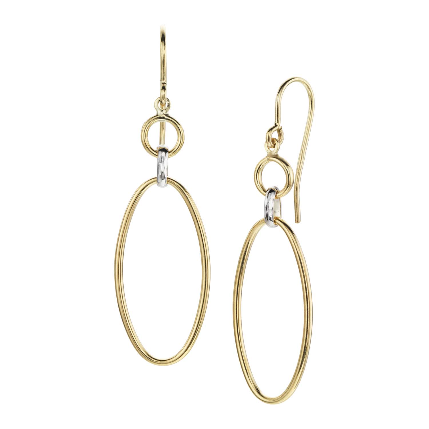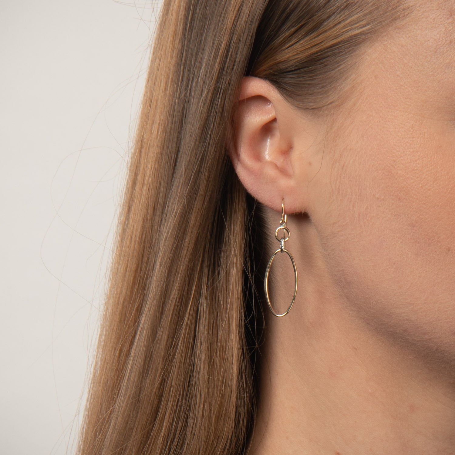 Disse ørehængere er udført i en smuk guldfarve, der fanger lyset på en sofistikeret måde. Den ovale form giver et moderne twist til det klassiske design, mens de små detaljer i metallet tilføjer en ekstra dimension af elegance. Ørehængerne hænger let og elegant fra øret, hvilket skaber en yndefuld bevægelse, når du går.