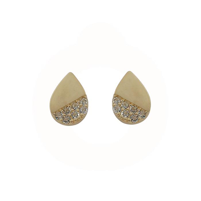 Disse ørestikker har en dråbeformet silhuet, der kombinerer en glat, gylden overflade med en funklende række af små sten. Den subtile kontrast mellem det polerede metal og de skinnende sten skaber en iøjnefaldende effekt, der fanger lyset smukt. Ørestikkerne er perfekte til at tilføje et strejf af glamour til dit outfit, uanset om du er på kontoret eller til en festlig begivenhed.