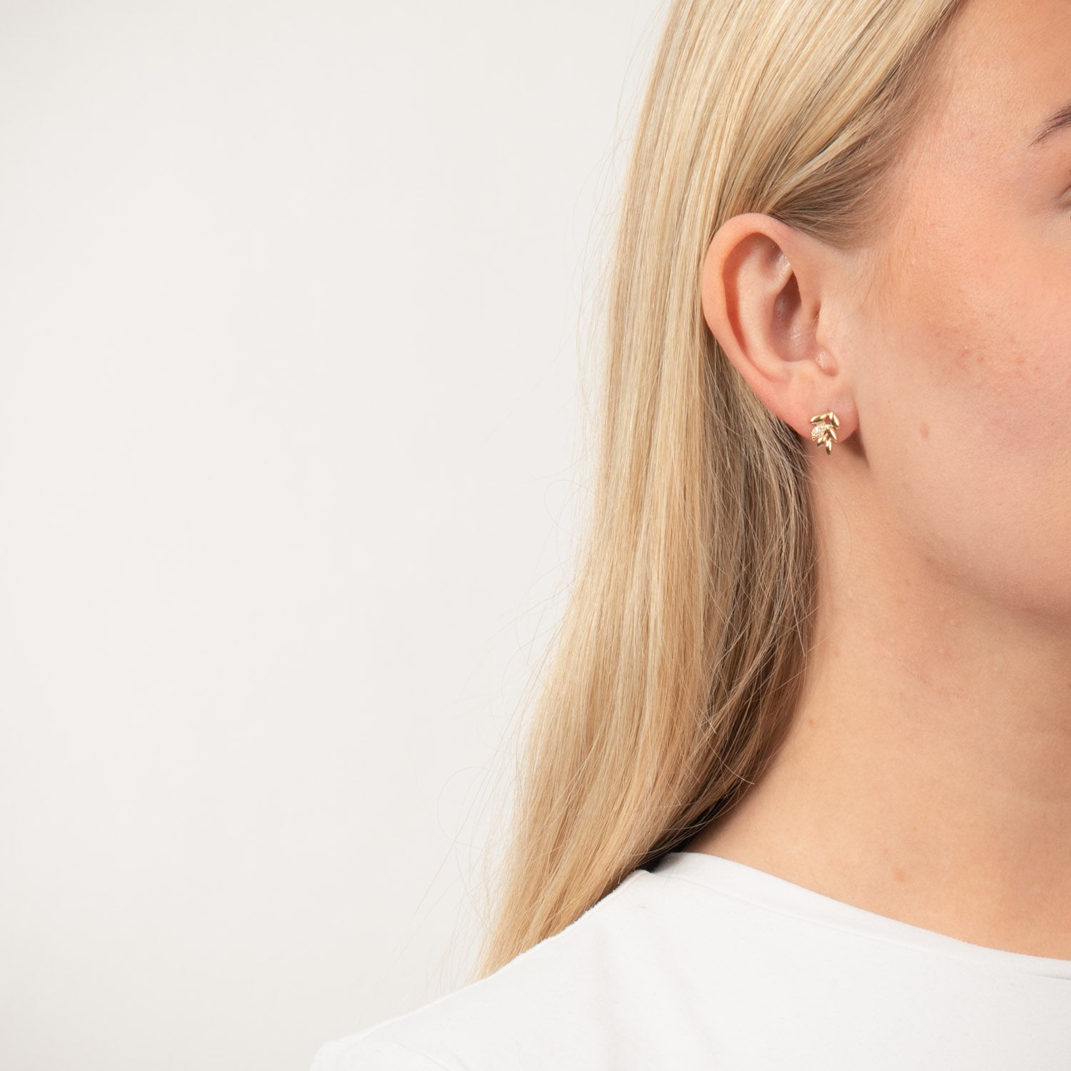 Vibholm GULD - Ørestikker med små blad, zirkonia - 9 karat guld