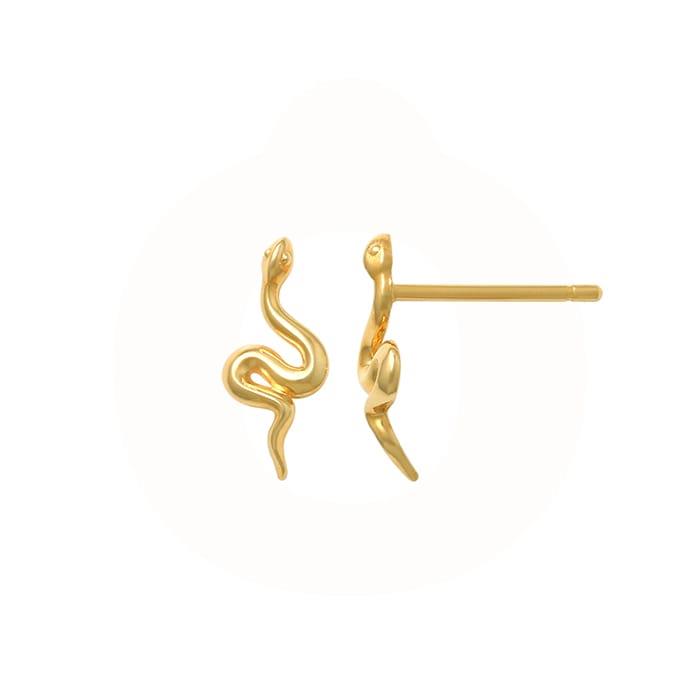 Disse ørestikker er formet som elegante slanger, der snor sig i en yndefuld kurve. Den gyldne farve giver et varmt og indbydende udtryk, mens den glatte overflade reflekterer lyset smukt. Designet er både moderne og tidløst, hvilket gør dem til et alsidigt valg for enhver smykkesamling.