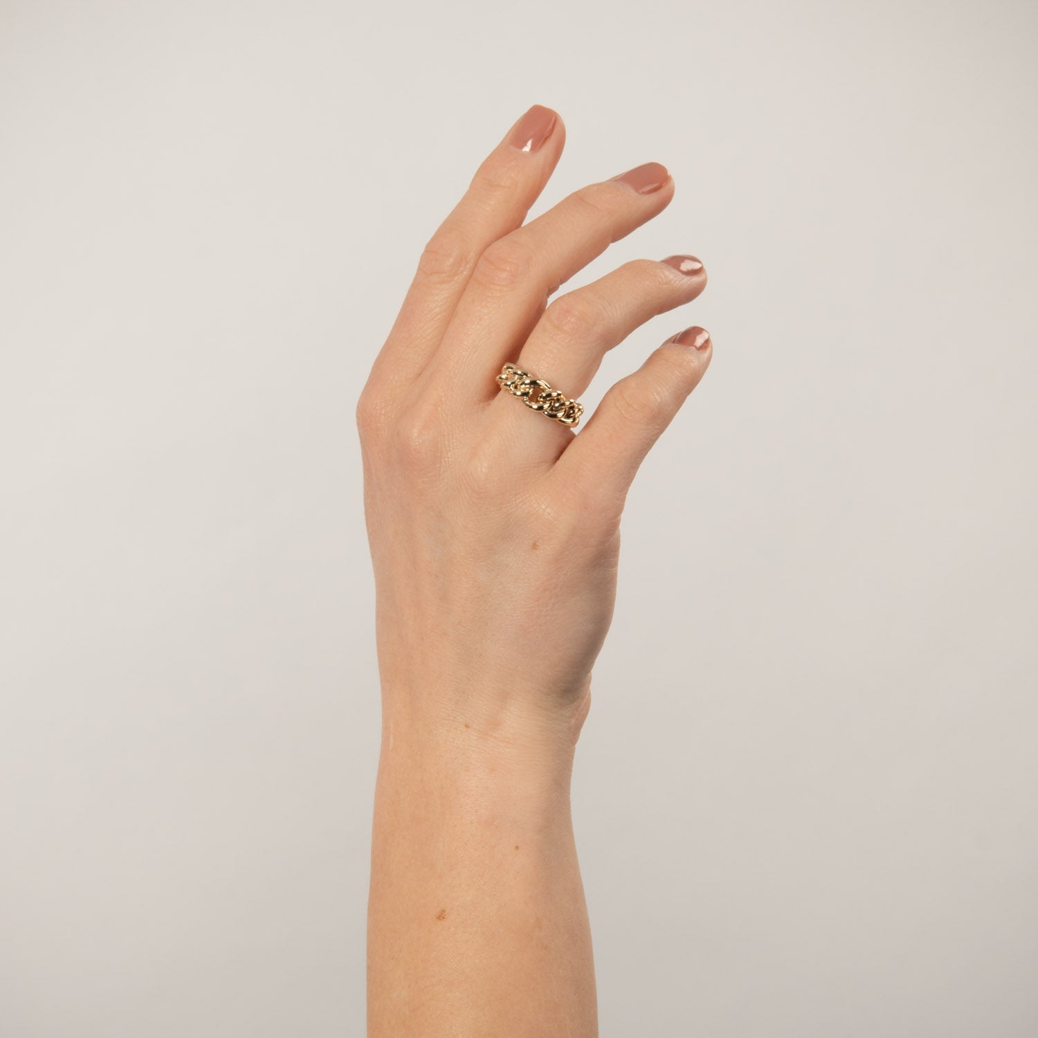 Oplev tidløs elegance med Vibholm GULD's panser ring, der er skabt til at tilføje et strejf af luksus til enhver anledning. Denne ring er fremstillet i 8 kt. guld og er et symbol på både kvalitet og stil.