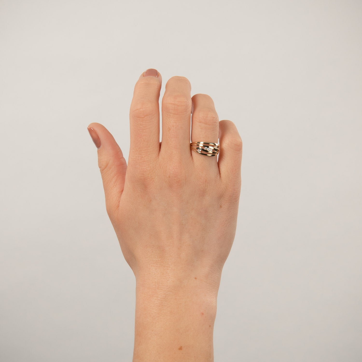 Ringen er fremstillet af 8 kt. guld, hvilket giver den en varm og indbydende glød. Det er et smykke, der både kan bæres til hverdag og til mere formelle begivenheder, og som altid vil tilføje et strejf af luksus til dit look.