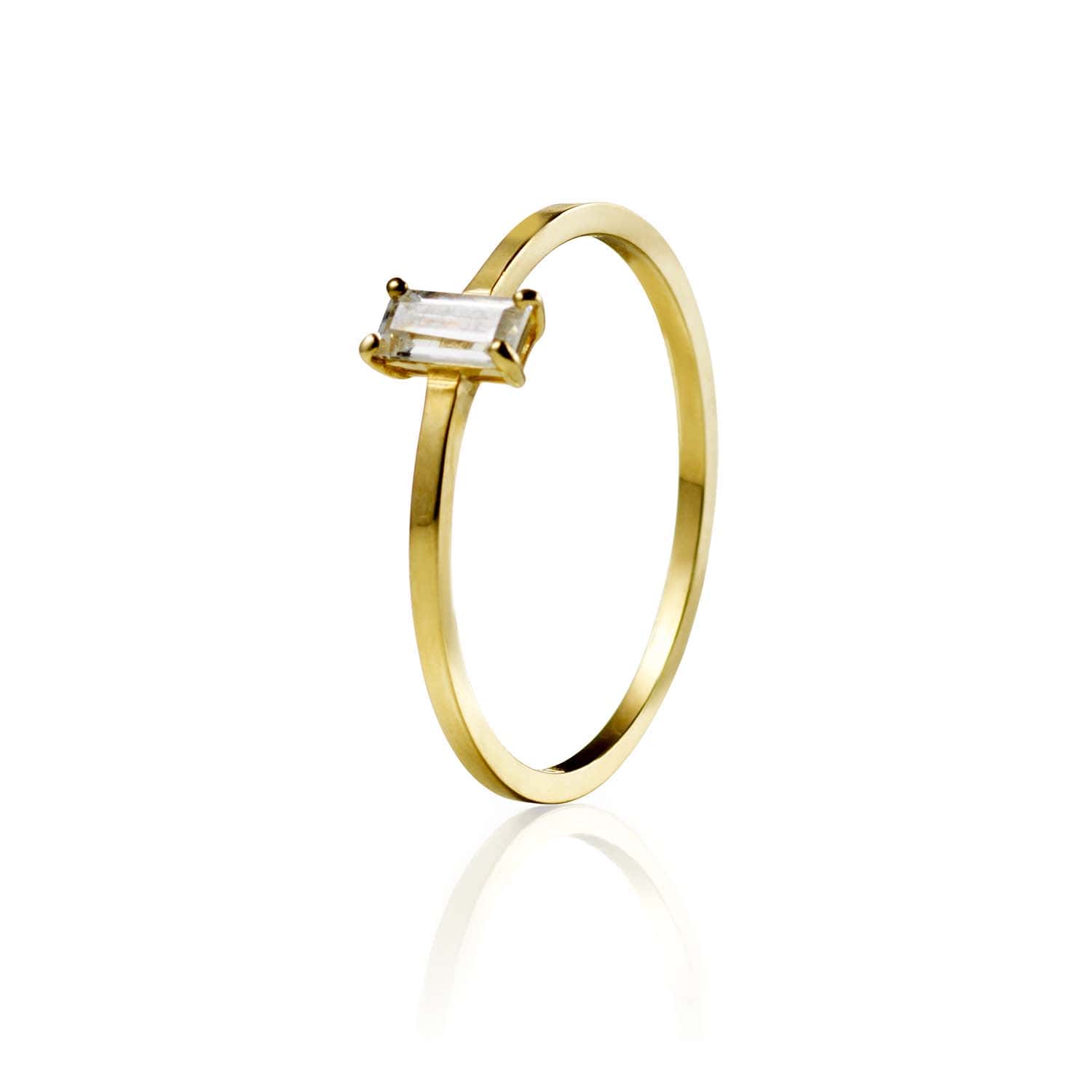 - Unik glans: Baguette stenen reflekterer lyset smukt og tilføjer en ekstra dimension til ringen.
