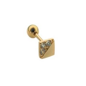 På billedet ser vi en ørestik med en moderne og minimalistisk æstetik. Den gyldne farve skinner blidt og tilføjer en varm glød til dit look. Ørestikken har en geometrisk form, der giver et stilfuldt og nutidigt udtryk. Den glatte overflade reflekterer lyset smukt, hvilket fremhæver dens forgyldte finish. Denne ørestik er ideel til både hverdag og festlige begivenheder, hvor den vil tiltrække opmærksomhed uden at være overvældende.