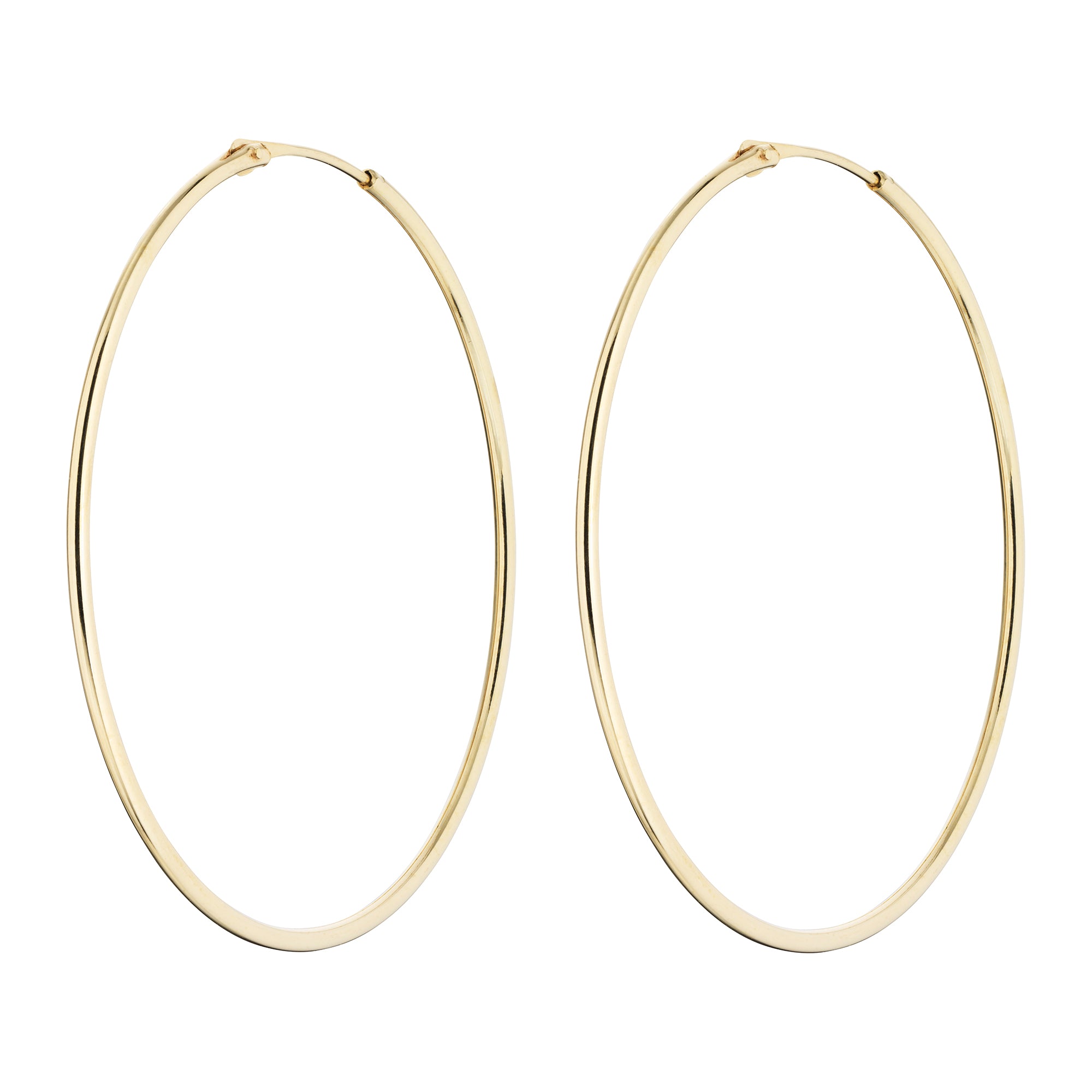 Disse creoler har en klassisk rund form, der fremhæver det skinnende guld. Den polerede overflade reflekterer lyset smukt, hvilket giver et strålende look. Med en diameter på 35 mm er de store nok til at gøre indtryk, men stadig lette og behagelige at bære hele dagen.