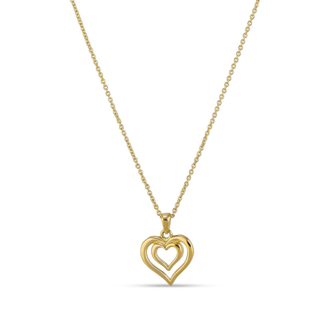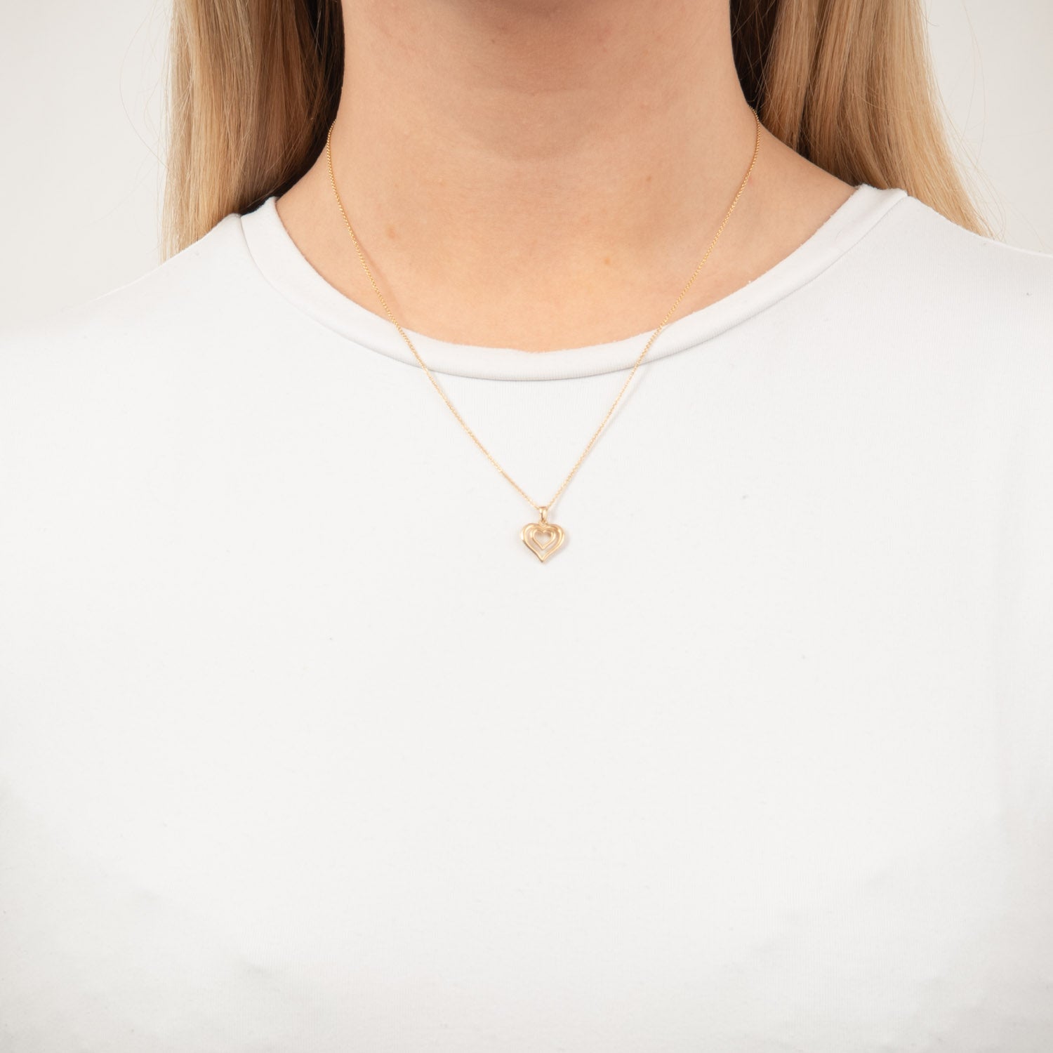 Vibholm GULD - Vedhæng m. dobbelthjerte og forgyldt kæde, 45+3 cm - 9 karat guld