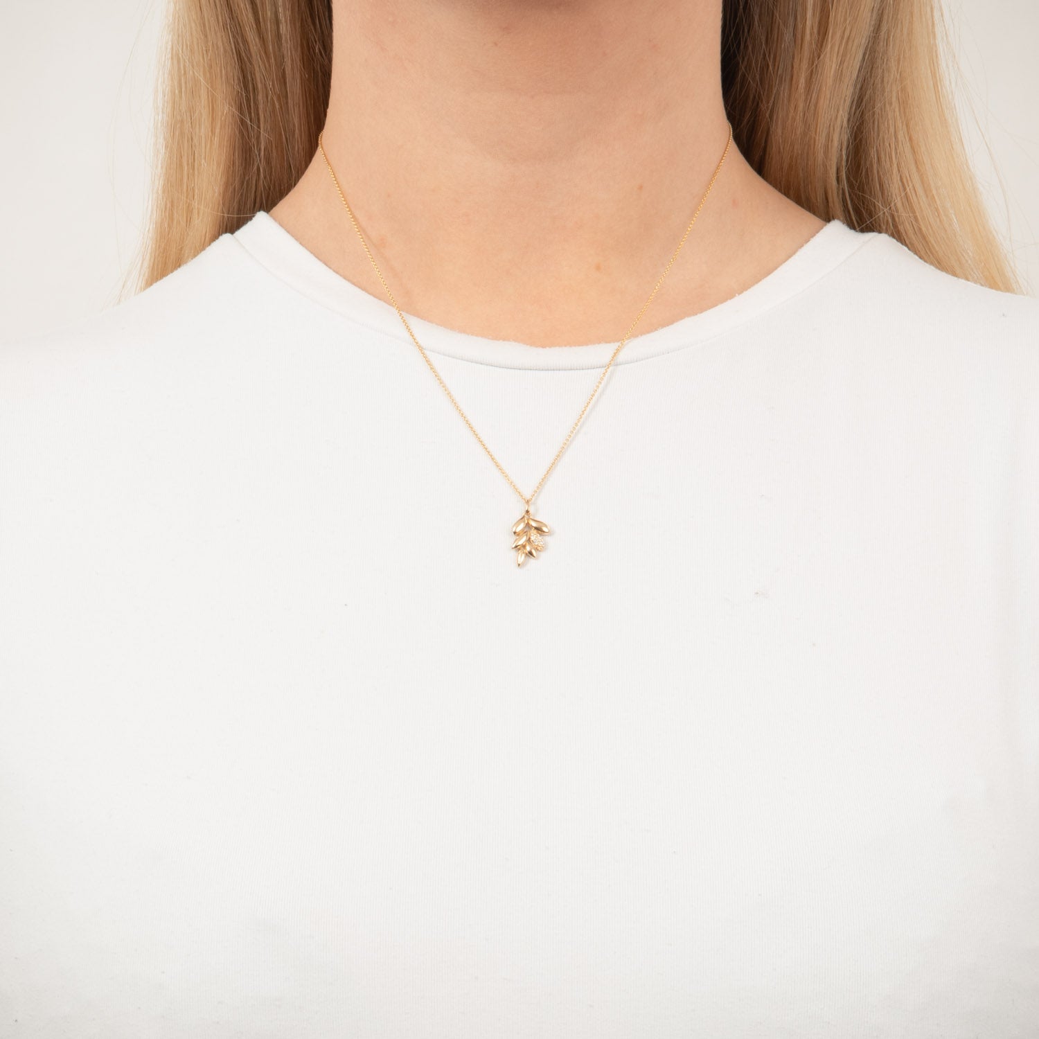 Vibholm GULD - Vedhæng med zirkonia/blad, 45+3 cm - 9 karat guld