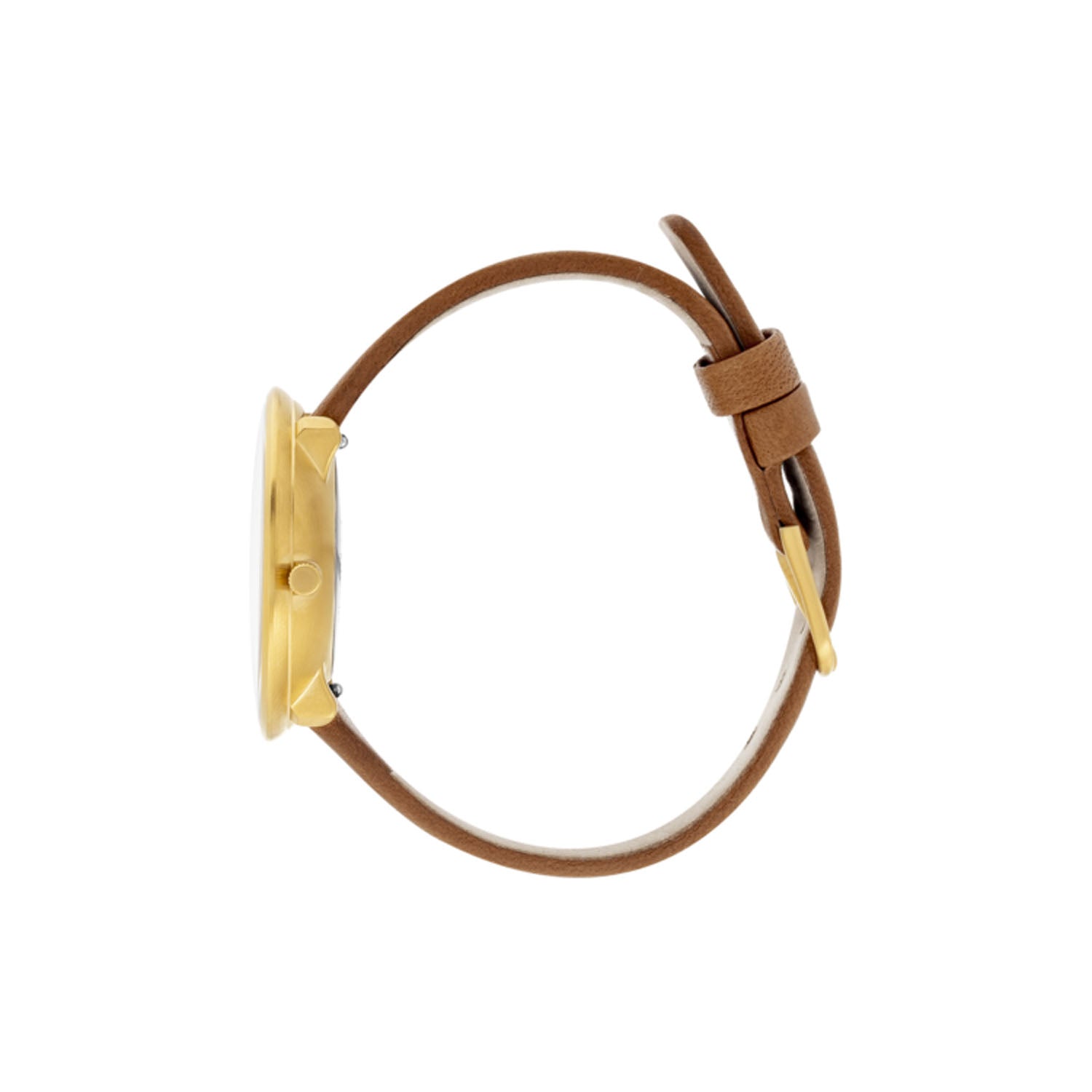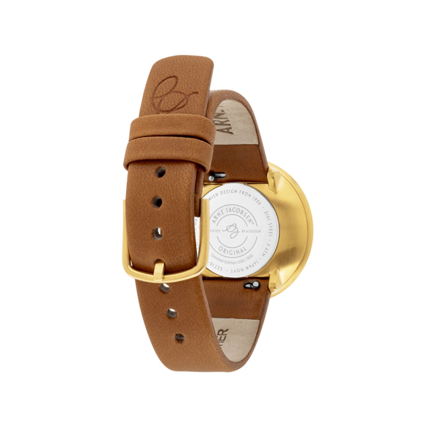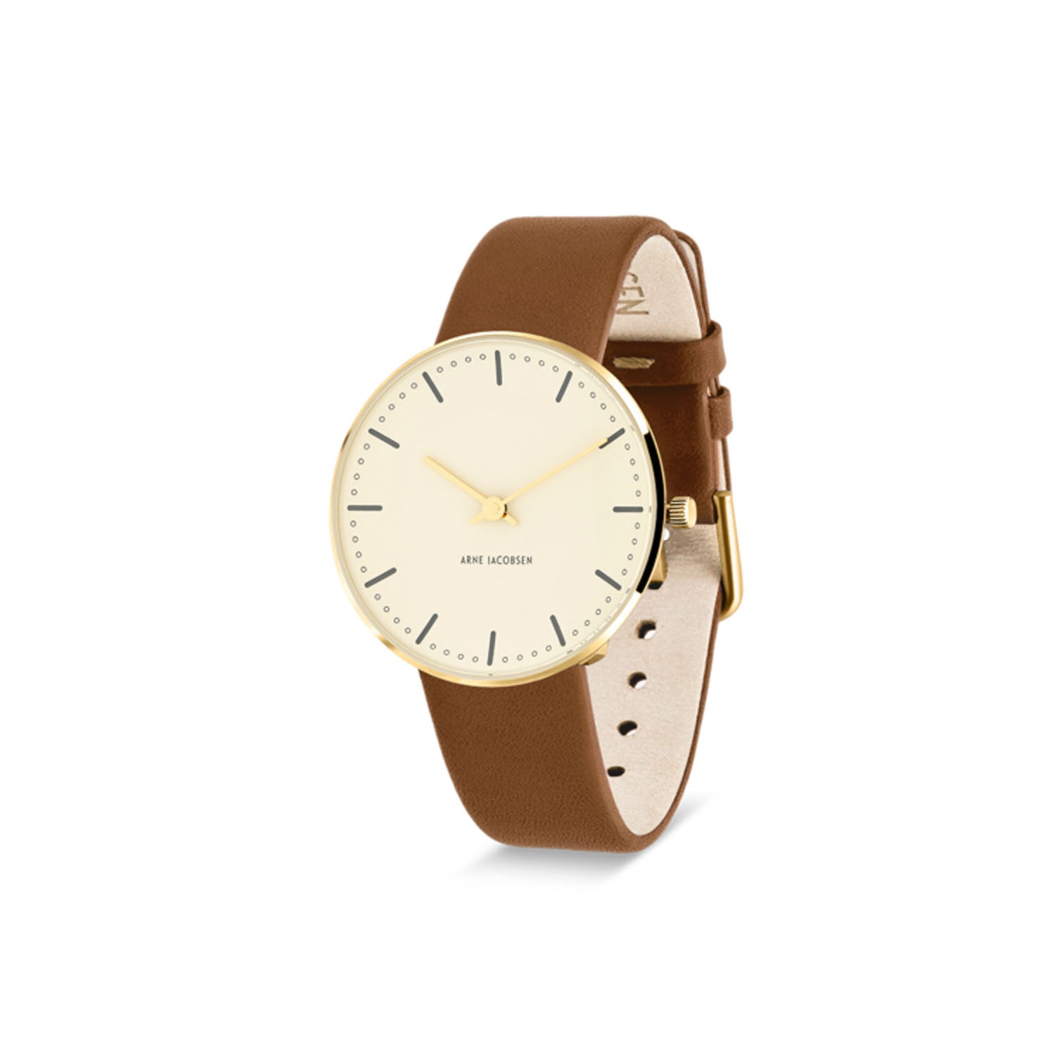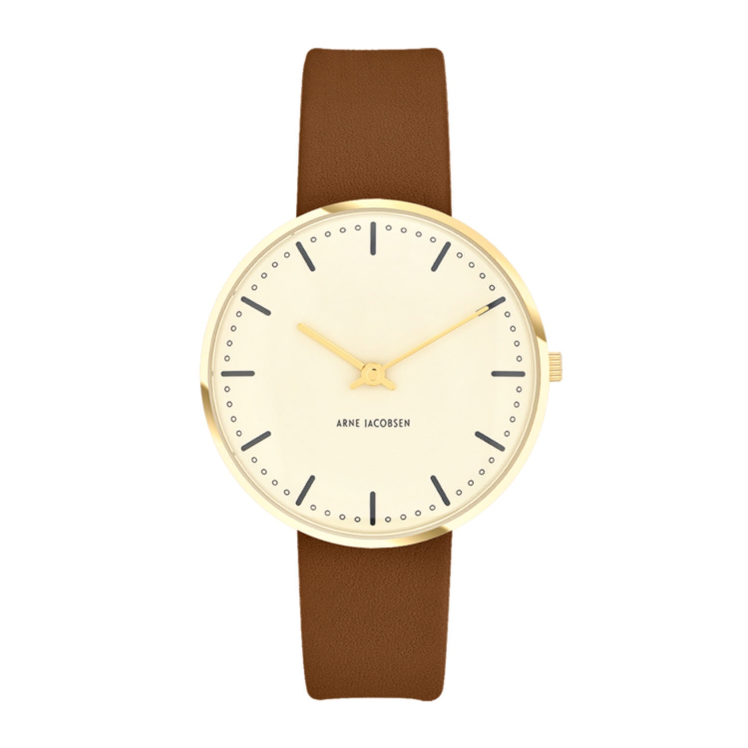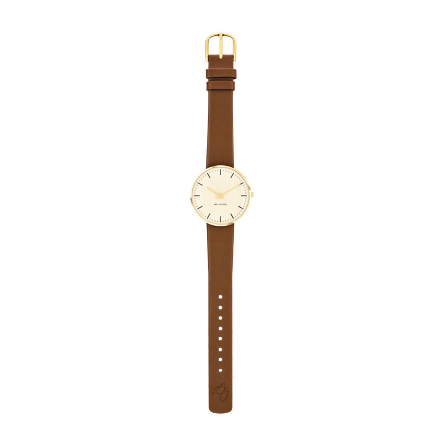 Arne Jacobsen - City Hall Ivory Bloom armbåndsur, Ø 34 mm - Guld PVD med brun rem