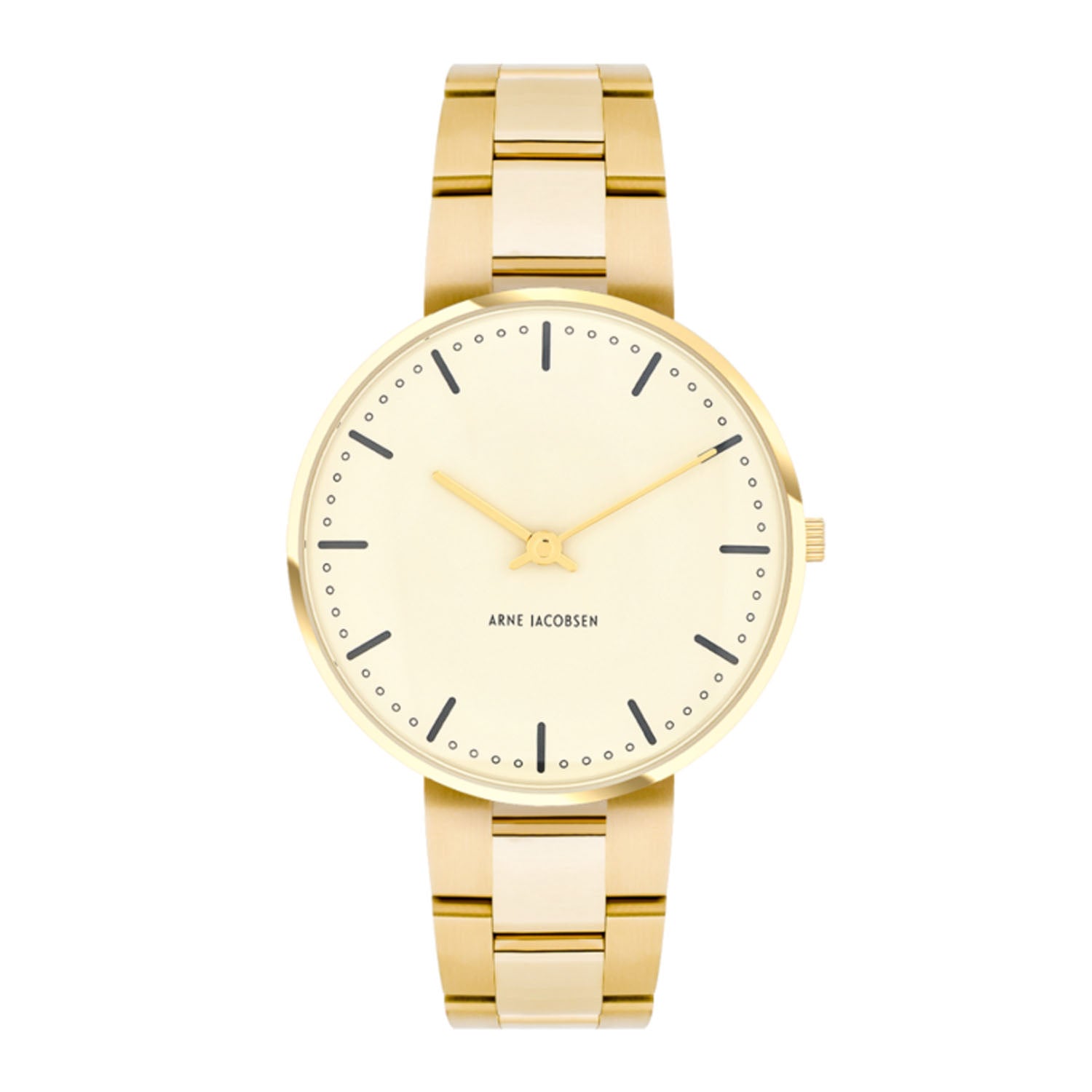 Arne Jacobsen - City Hall Ivory Bloom armbåndsur, Ø 34 mm - Guld PVD med lænke
