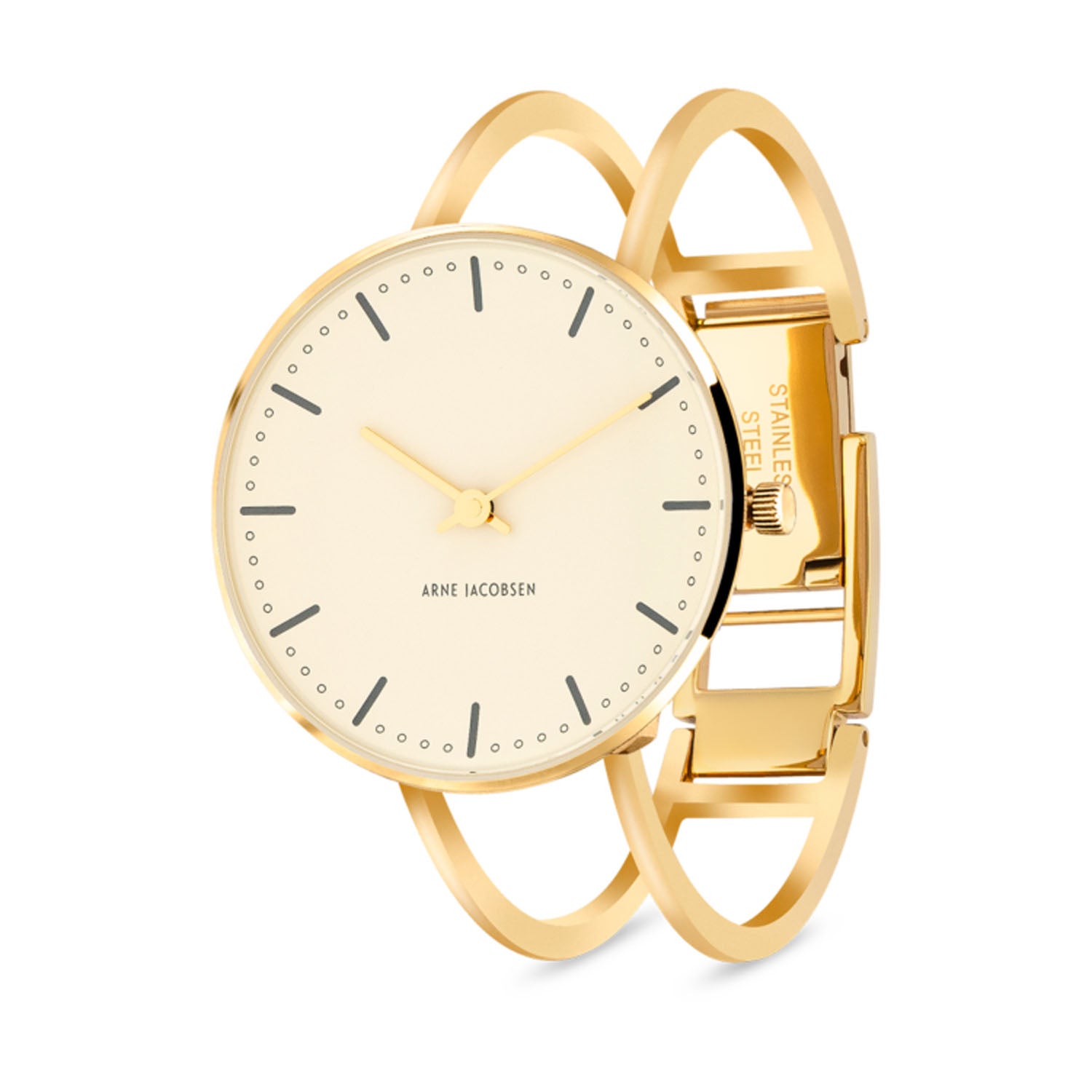Arne Jacobsen - City Hall Ivory Bloom armbåndsur, Ø 34 mm - Guld PVD med urbøjle