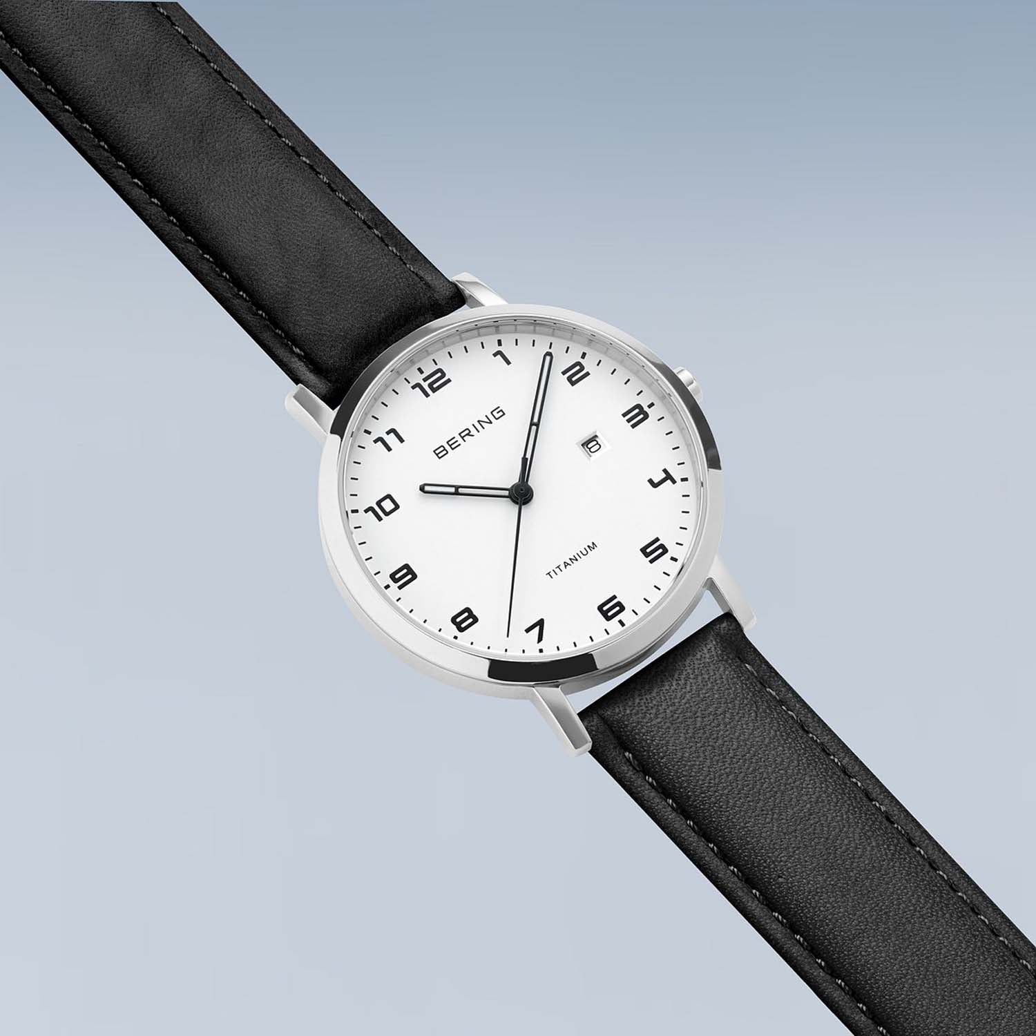 BERING - Titanium ur m. hvid skive, 34x40 mm - 18634-404