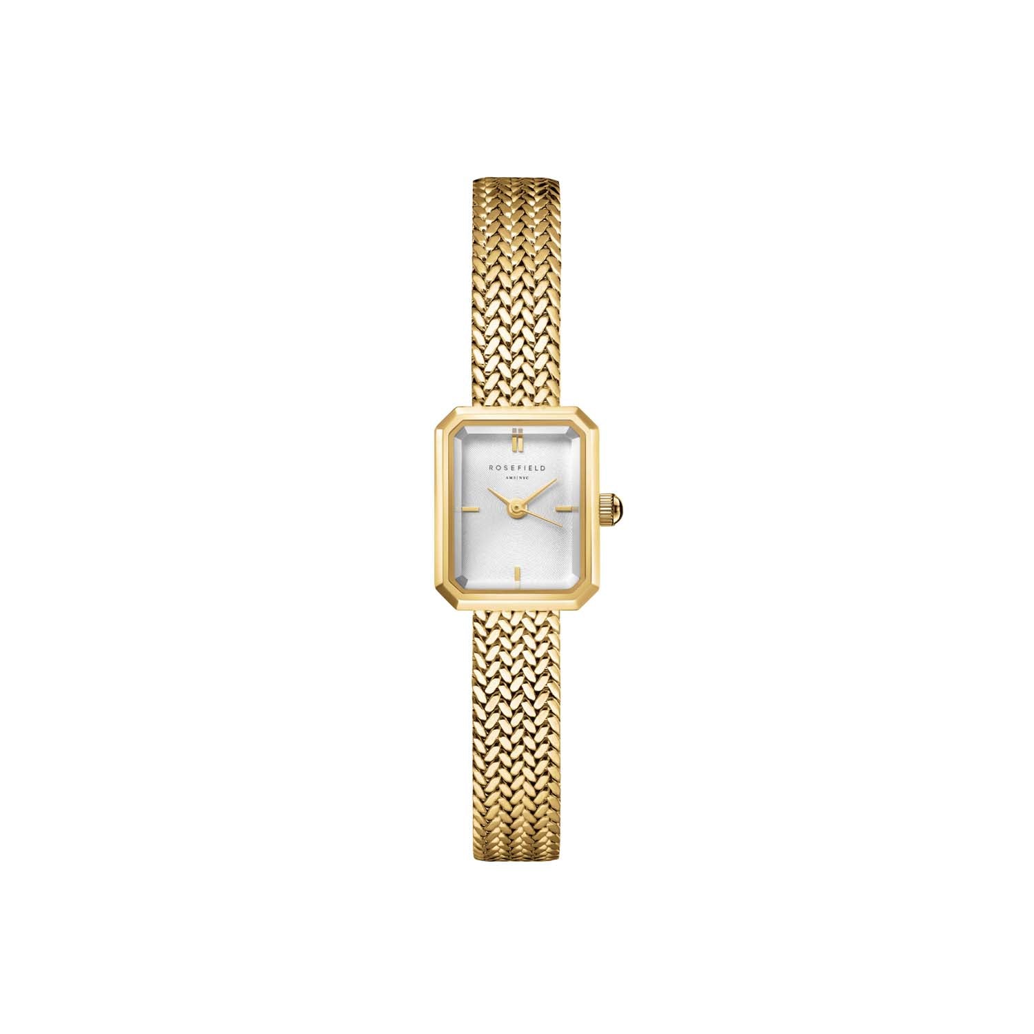 Oplev tidløs elegance med Rosefield's Mini Octagon Gold ur. Dette ur kombinerer stil og funktionalitet i et kompakt design, der passer perfekt til enhver lejlighed. Med sin slanke profil og raffinerede detaljer er det en ideel tilføjelse til din smykkesamling.