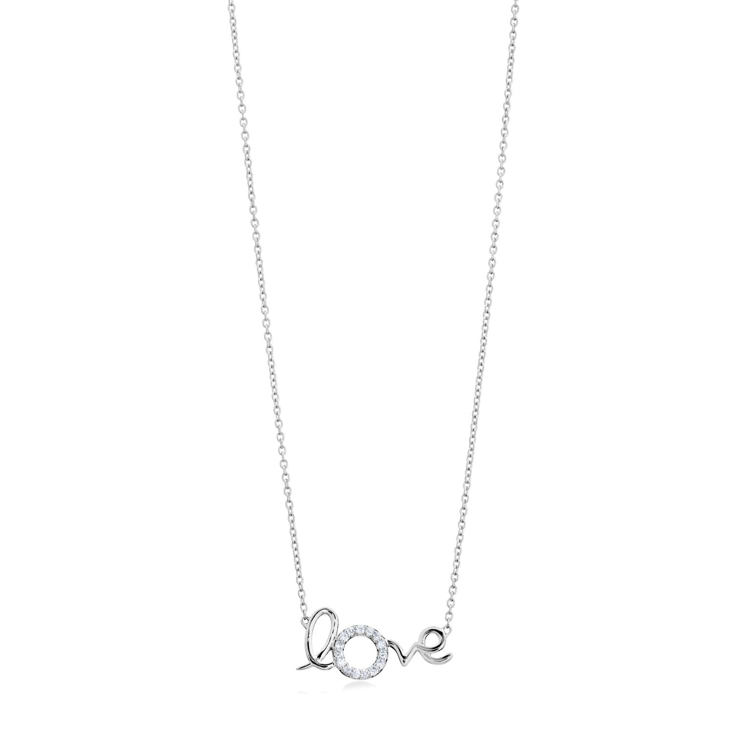 Aveny COLLECTION - Collier "love", 15brillanter w/si, 42-45 cm - 14 kt. hvidguld