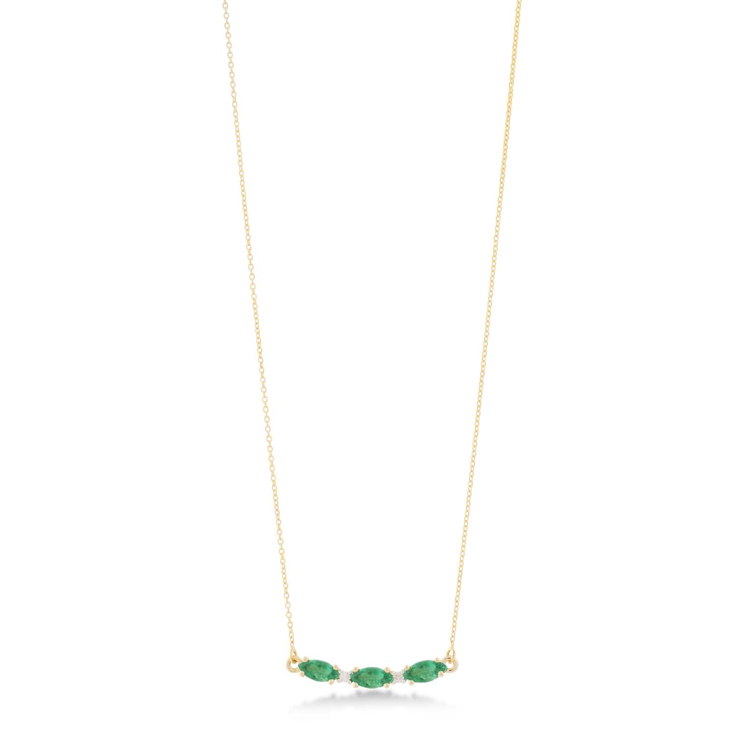Aveny COLLECTION - Collier m. 3 smaragder og 2 brillanter, 0,02ct w/pi - 14 kt. guld