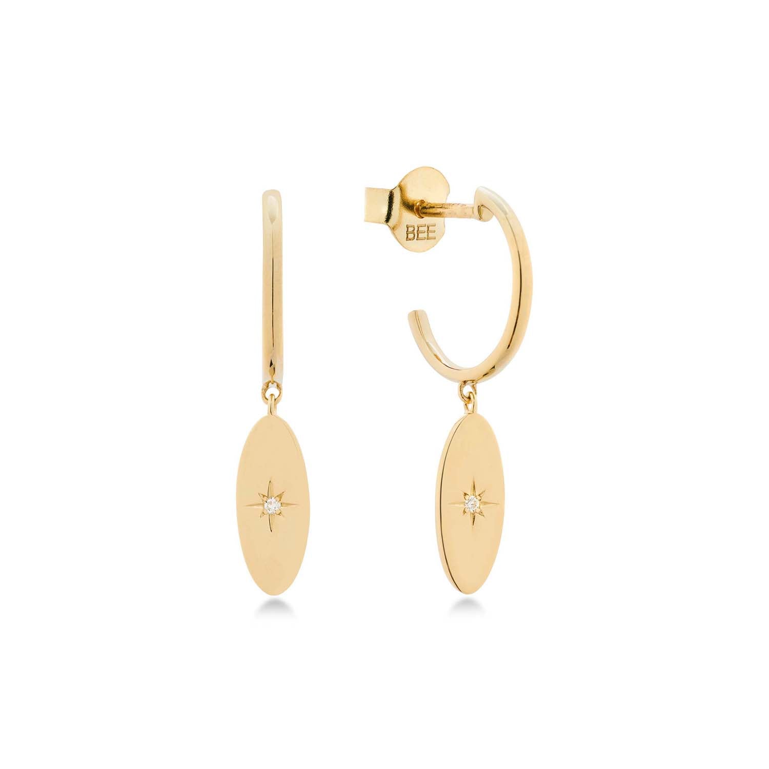 Aveny COLLECTION - Creoler m. pladevedhæng, 0,01 ct. w/si - 8 kt. guld
