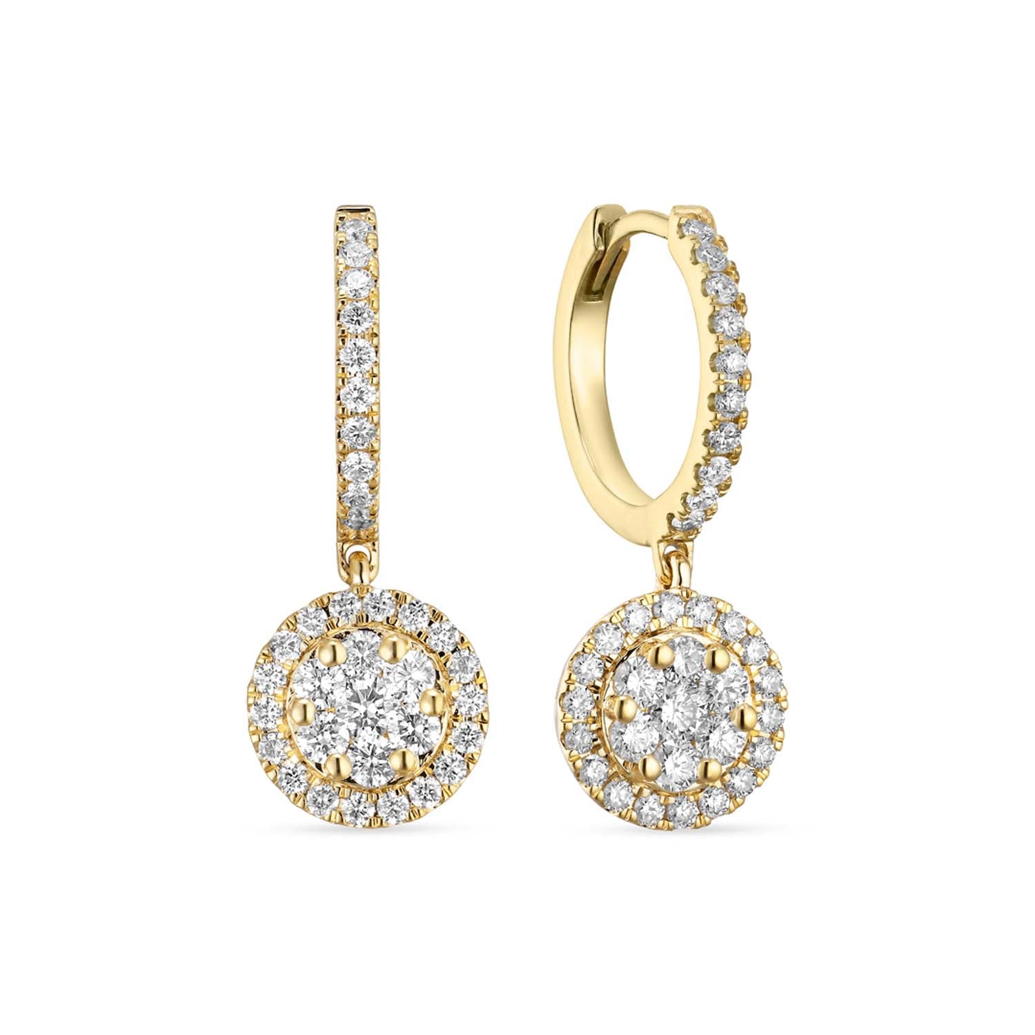Aveny COLLECTION - Creoler m. rundt vedhæng, 0,74 ct. w/si - 14 kt. guld