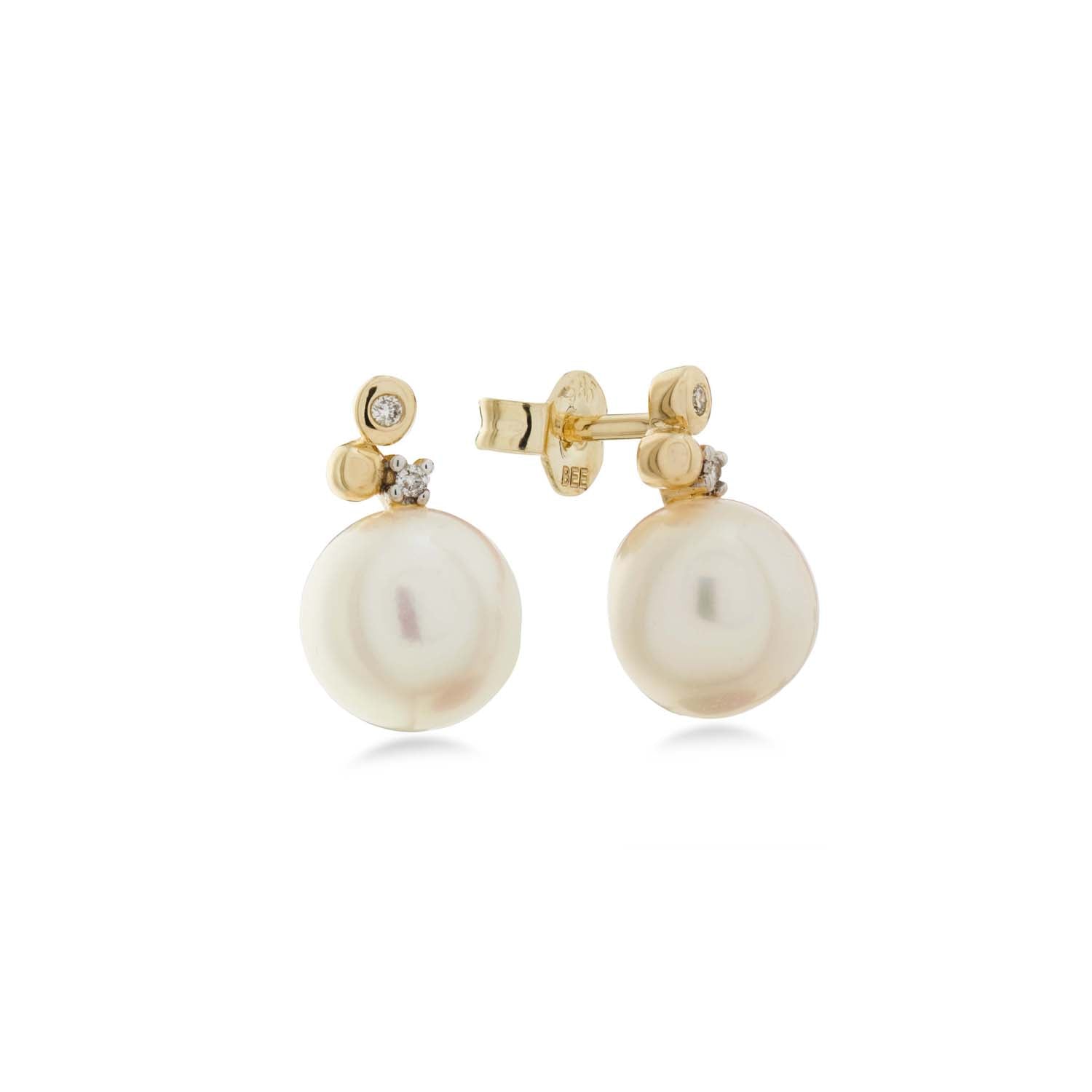 Aveny COLLECTION - Ørestikker m. button ferskvandsperler, 0,02 ct. w/si - 14 kt. guld
