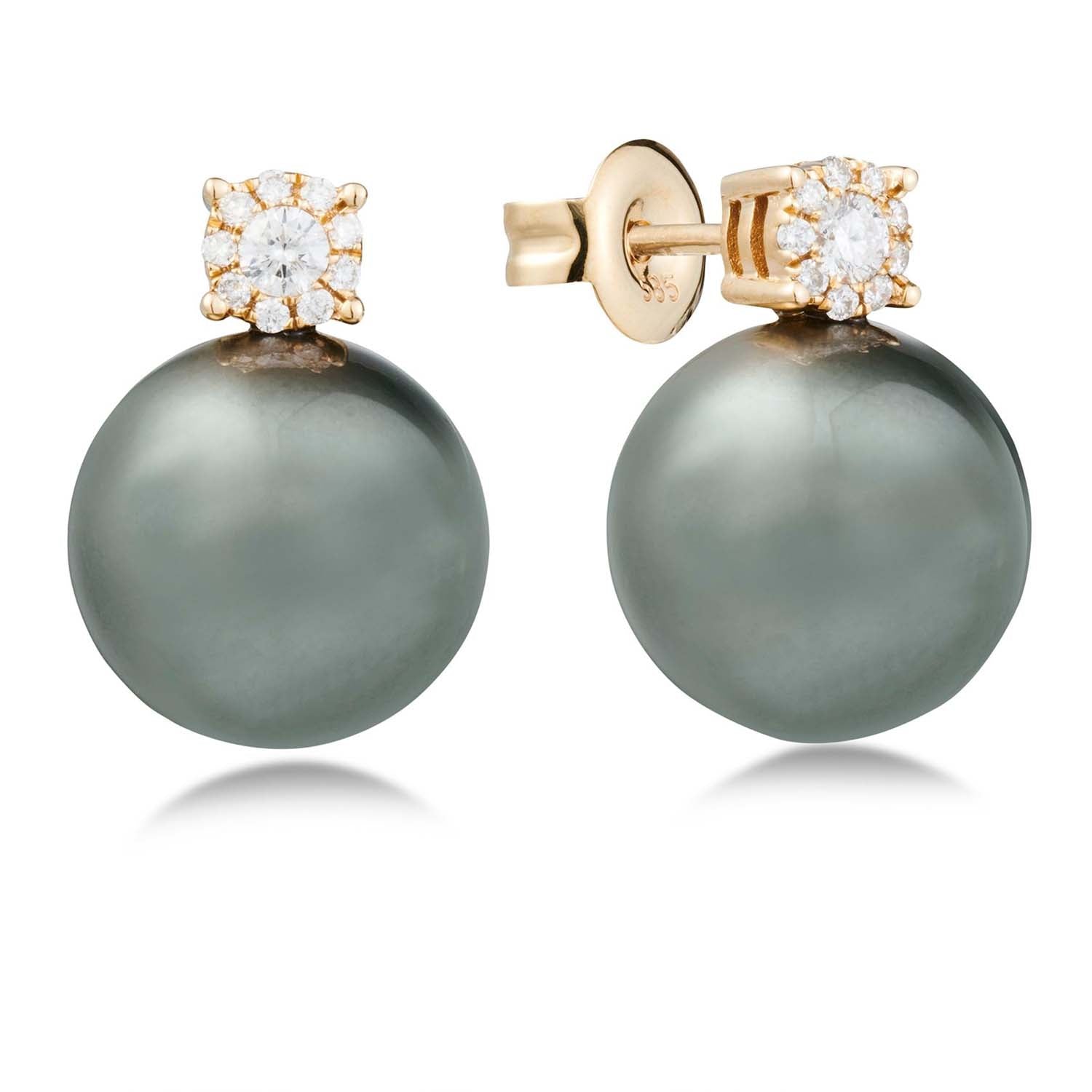 Aveny COLLECTION- Ørestikker m. tahitiperle, 10mm/0,14 ct. w/si - 14 kt. guld