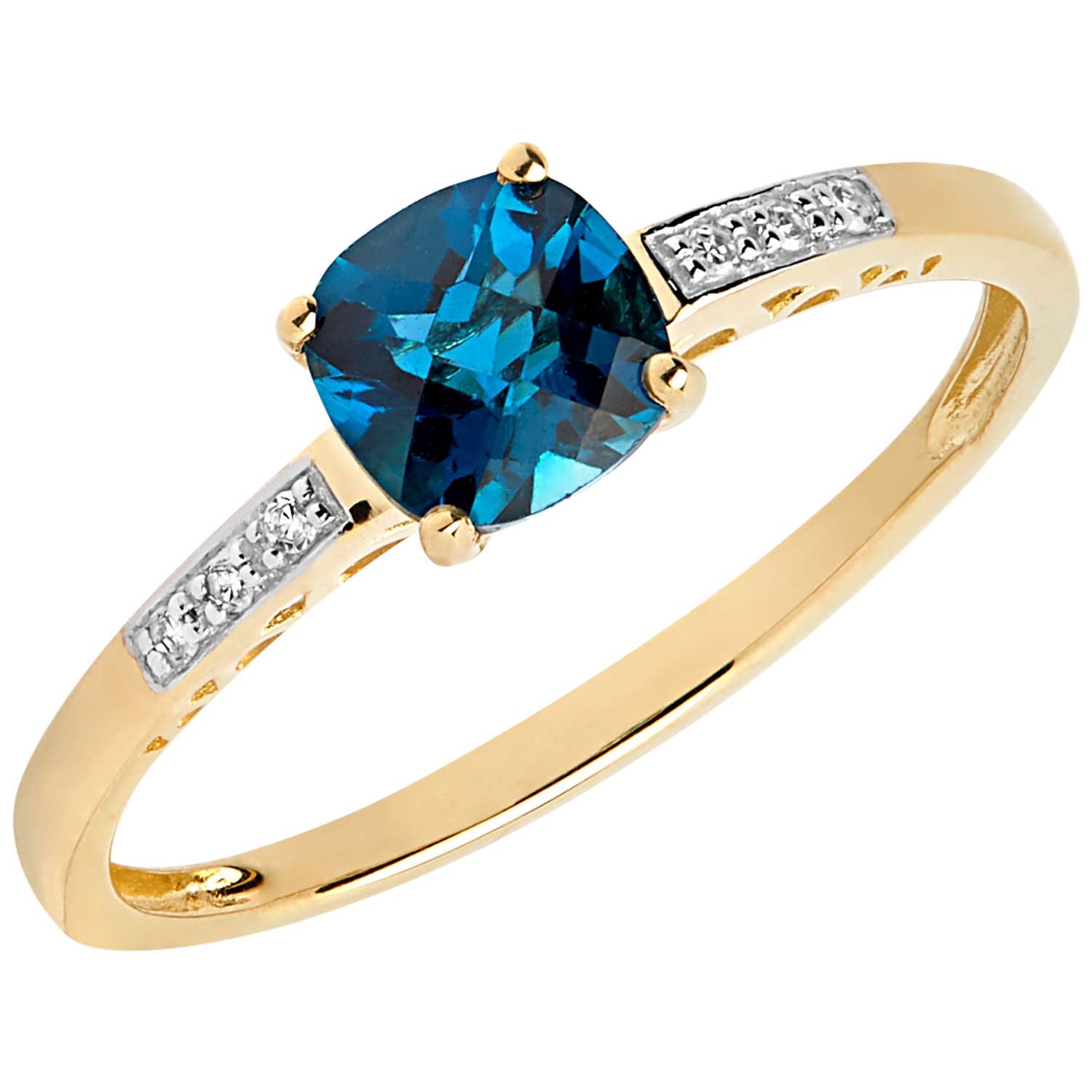 Aveny COLLECTION - Ring, Londonblå topas/6 diamanter - 14 kt. guld